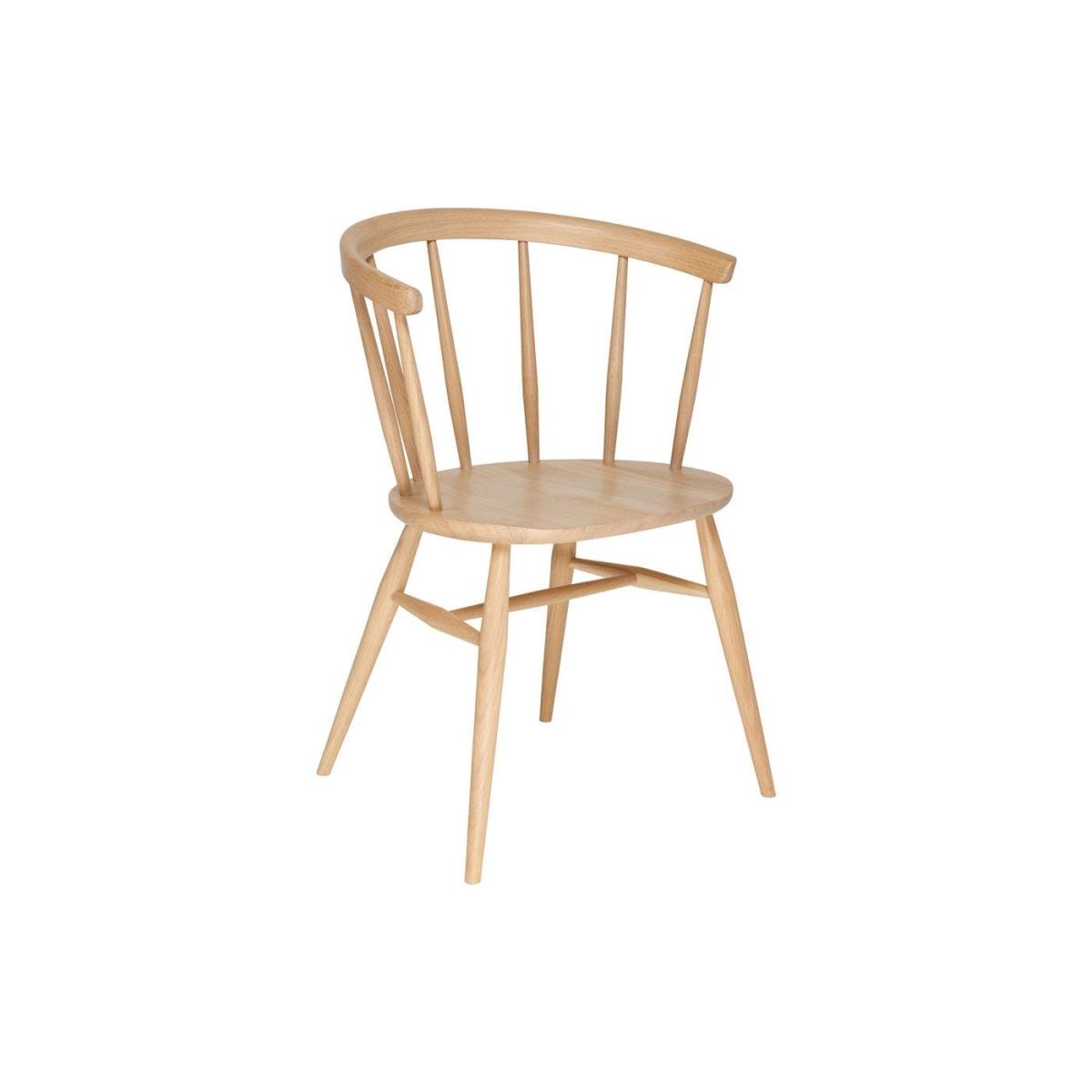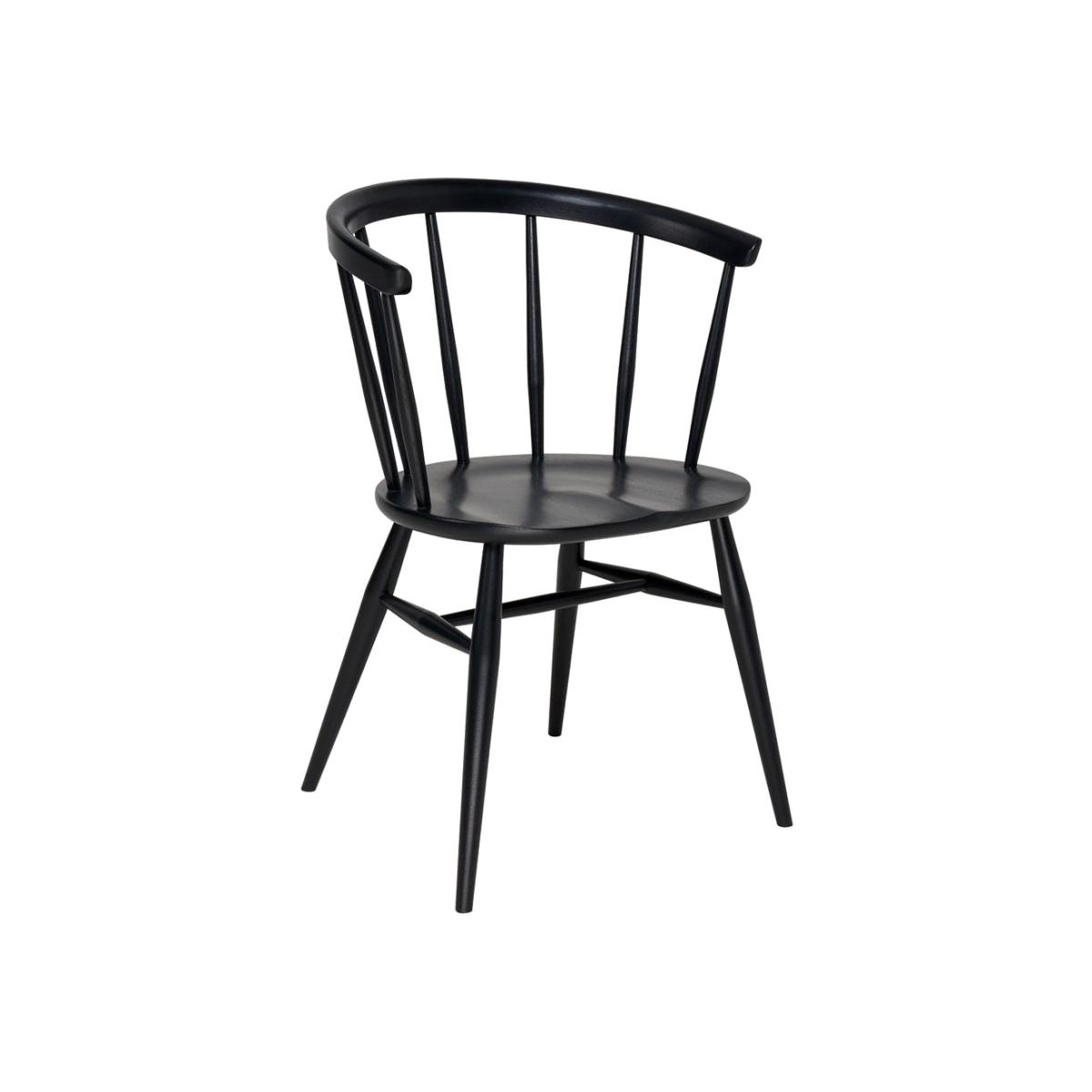 The Heritage collection was designed and created by Ercol's founder Lucian R Ercolani. Drawing on Ercol's long design legacy these pieces have been created by ercol's In- house design team to sit along side a variety of furniture to create a modern eclectic look. Reimagined for the present day these pieces are designed to sit in any room across the home. The Heritage armchair has a striking graphic profile and feature ercol's iconic tapering legs and elegant spindle back combined with an elegant smooth curved top rail to create an encompassing outline. The solid oak seat is sculptured to provide a comfortable sit. Available in two modern finishes dead matt lacquer or striking black.