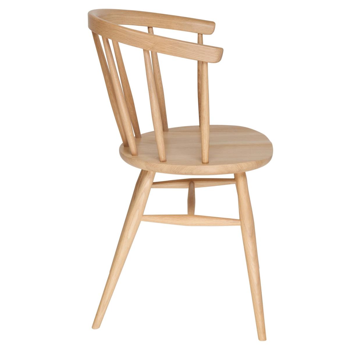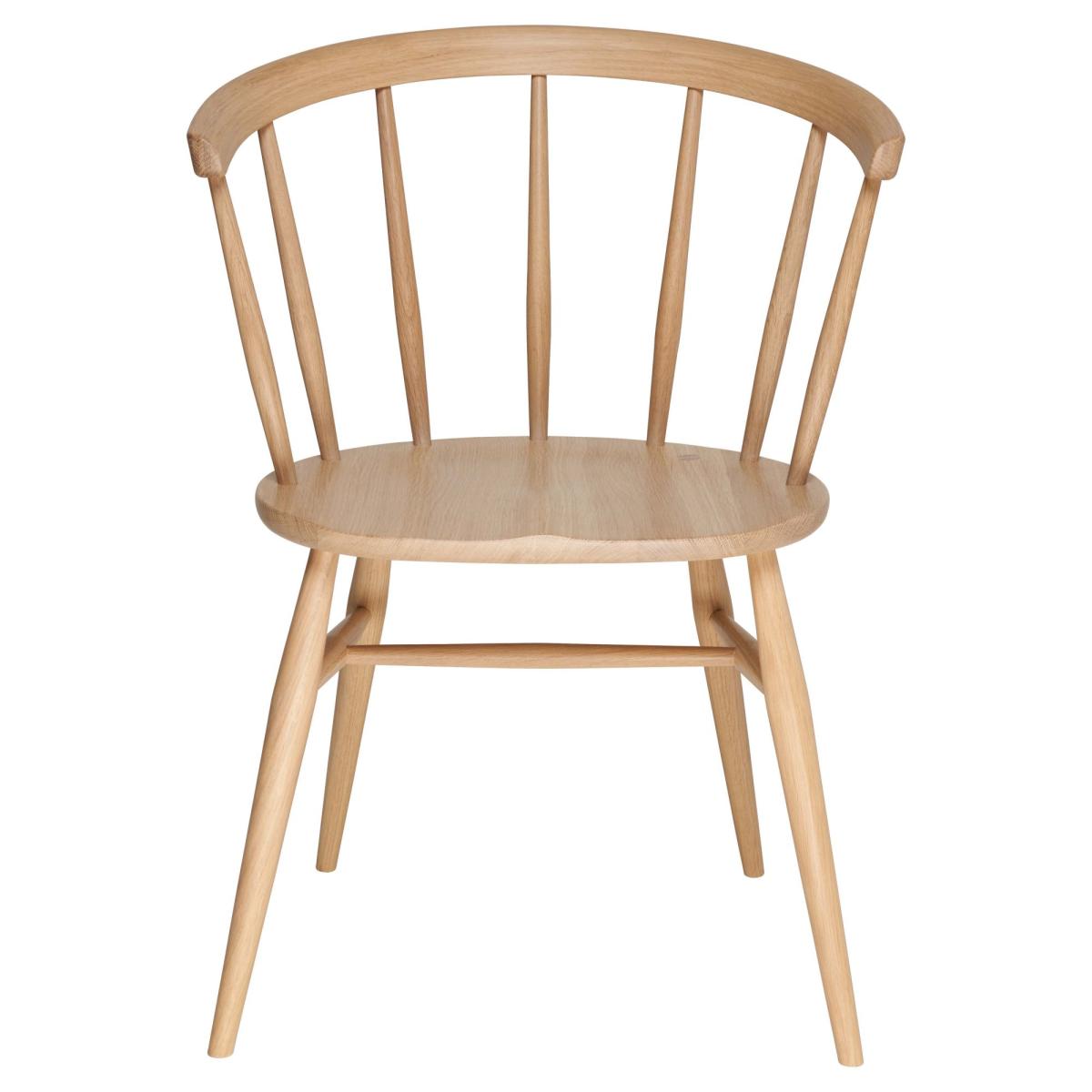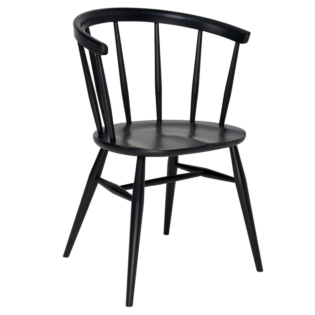 The Heritage armchair has a striking graphic profile, as with the Heritage chair it feature ercols iconic tapering legs and elegant spindle back combined with an elegant smooth curved top rail to create an encompassing outline. The solid oak seat is sculptured to provide a comfortable sit. Available in two modern finishes dead matt lacquer or striking black. Ercol Code 4341. Dimensions W58cm x H81cm x D51cm, Seat Height 45cm. Solid Oak in construction. Natural and Black finishes available. Fully assembled. Simple self assembly