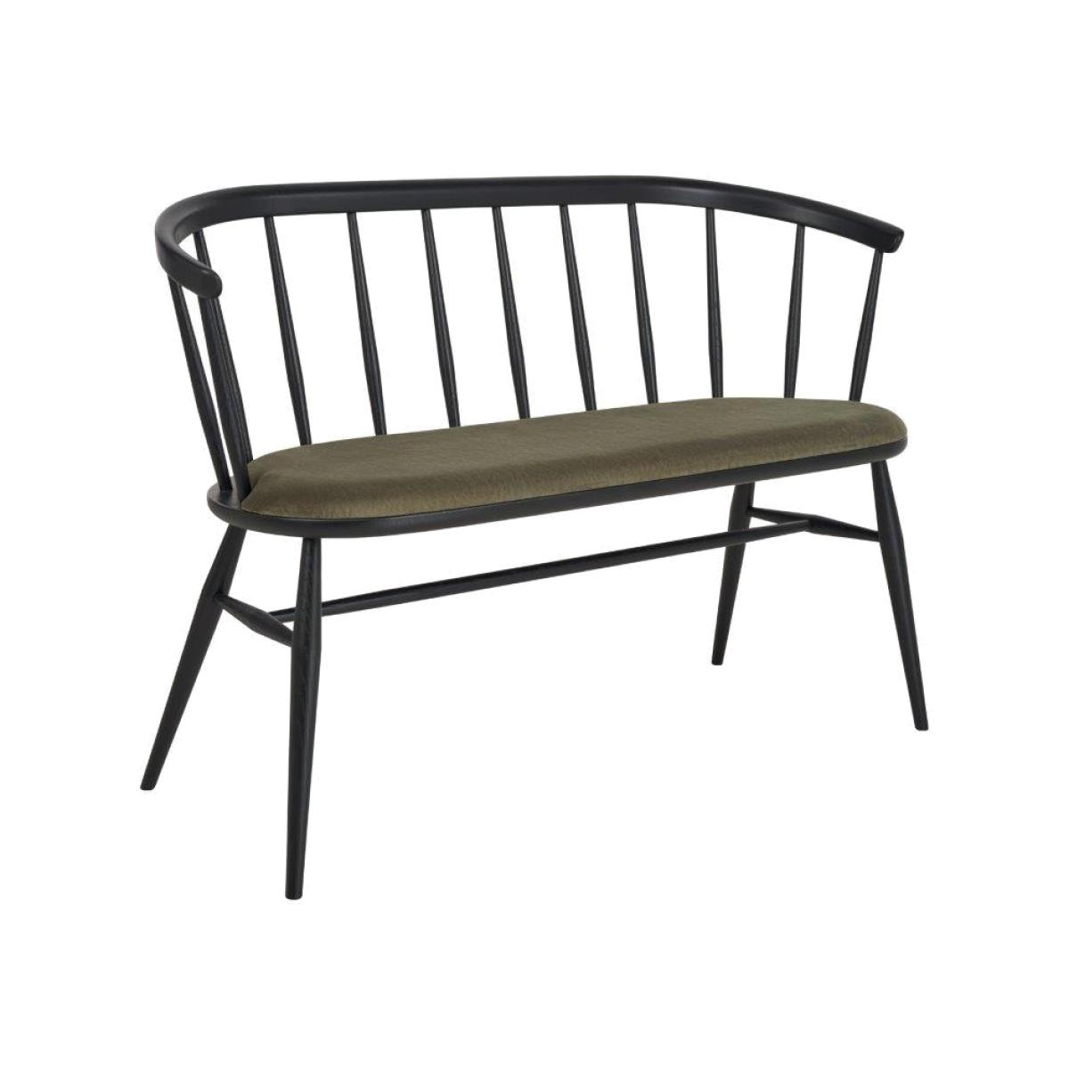 The Heritage collection features the character and handwriting that is synonymous with ercol's mid-century identity. Reimagined for the present day these pieces are designed to sit in any room across the home, crafted from solid oak and solid ash for the stool, they are available in natural or black finish on the oak or all ercol finishes on the ash and with fabrics from the ercol collection. The Heritage Loveseat is a striking statement piece full of attractive curves, tapered legs and spindles combined with a curved back rail to create a seat perfect for two.  A contemporary seating solution, this loveseat is a perfect way to add seating around a dining table or just be a statement piece for a hallway or bedroom.  Available in two modern finishes dead matt lacquer or striking black. Fully assembled. Dimensions - W 122cm x D 51cm x H 81cm Weight - 11kg