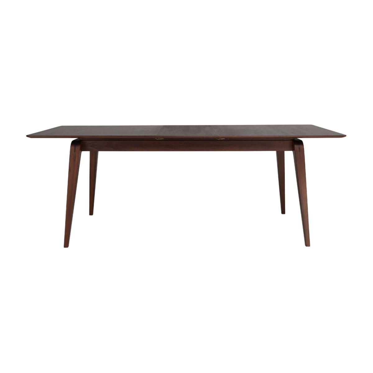 Characterised by its slim simplicity, clean lines and curved corners, the Lugo dining table lends a refined feel to any interior. Crafted from beautiful dark stained tulipwood, this minimal yet utterly functional piece brings mid-century Scandinavian style to modern spaces. Perfect for unexpected guests or special occasions, it can be quickly and easily extended from six seats to eight when needed. Simply pull on one end to extend and the other will open at the same time, thanks to the inbuilt reciprocating mechanism.