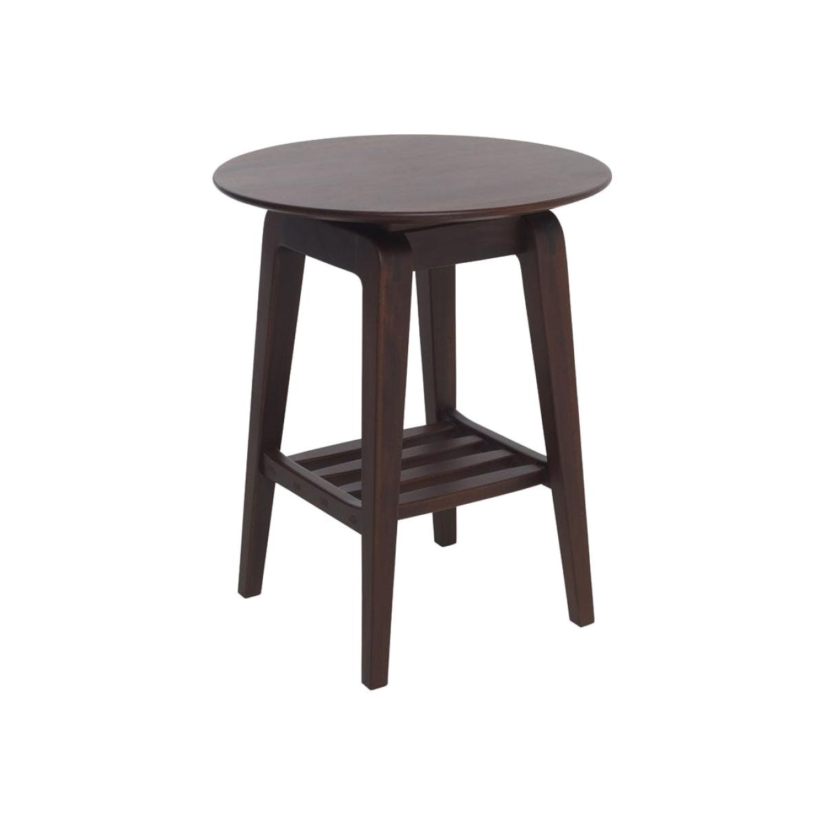 Subtle and sophisticated, the Lugo side table is a practical yet effortlessly stylish addition to any living space. The elegant rounded table top sits nonchalantly atop the frame, due to the refined shadow gap. Additional functionality is given through a slatted shelf, lending any space a compact storage solution. Crafted from beautiful tulipwood that's treated to a dark, rich finish, this sleek table effortlessly compliments warm interiors.
