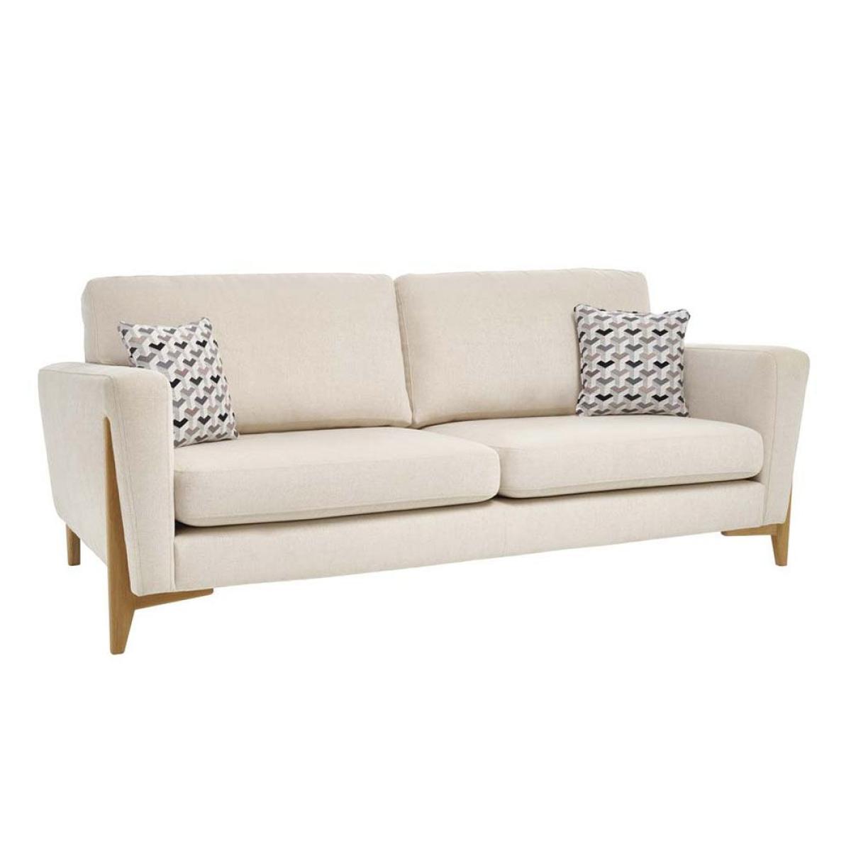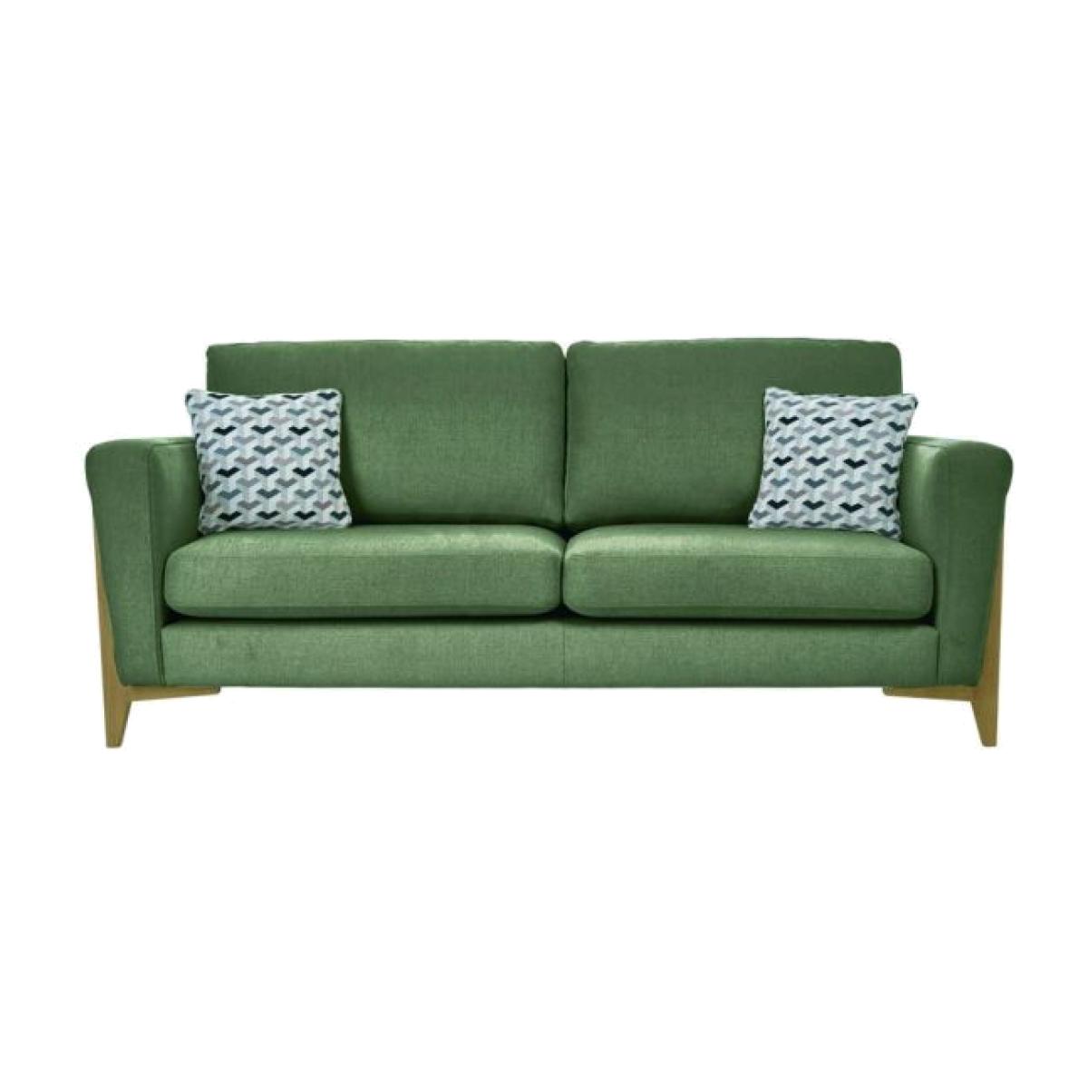 The Marinello large sofa is a contemporary sofa which maintains elegance with it's refined oak legs. This comfortable sofa with its deep seats offers plenty of room to seat up to four easily. To add further style you can choose from fashionable fabric colours or prints for the two scatter cushions which are filled with a mix of feather and fibre. The oak legs are finished in a beautiful clear matt lacquer to highlight the natural wood grain.