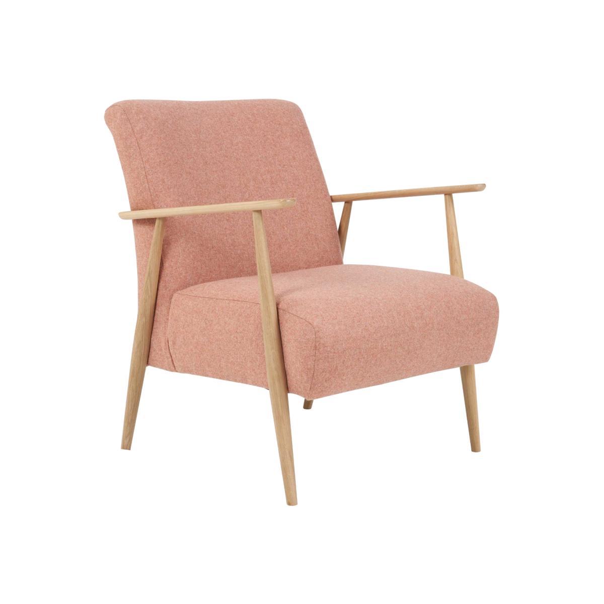 I love this armchair for its clean, minimalist lines and soft blush fabric, which adds a welcoming touch to both contemporary and Scandi-inspired interiors. It's a versatile piece that works well in cosy living rooms, reading nooks, or even as a stylish accent in a bedroom corner. When styling around it, consider pairing with neutral or pastel tones to keep the look fresh, or add a textured throw and cushions for extra comfort and visual interest. Its natural wood frame lends itself nicely to wood or rattan furniture, creating a warm, natural atmosphere. Practical tips include placing it near a side table for convenience or alongside a small rug to define your seating area without overcrowding the space.