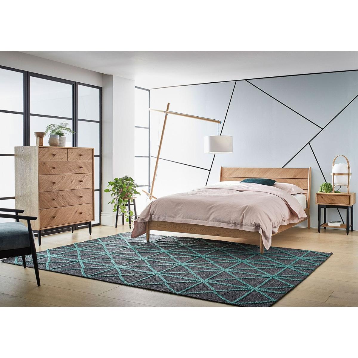 I really like this bedside cabinet because of its clean, modern lines with a warm wood finish that adds a touch of natural warmth. It works particularly well in contemporary or Scandi-inspired interiors, where its simple silhouette can complement minimalist beds and neutral palettes. Practical styling tips include pairing it with textured textiles or adding a small plant to soften its look. Its single drawer offers handy storage for nighttime essentials, while the lower slatted shelf is great for books or decorative accessories, keeping the top surface clutter-free. Overall, this piece combines functionality with understated style, making it a versatile addition to most bedroom schemes.