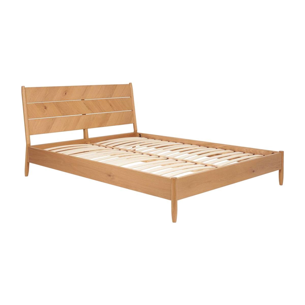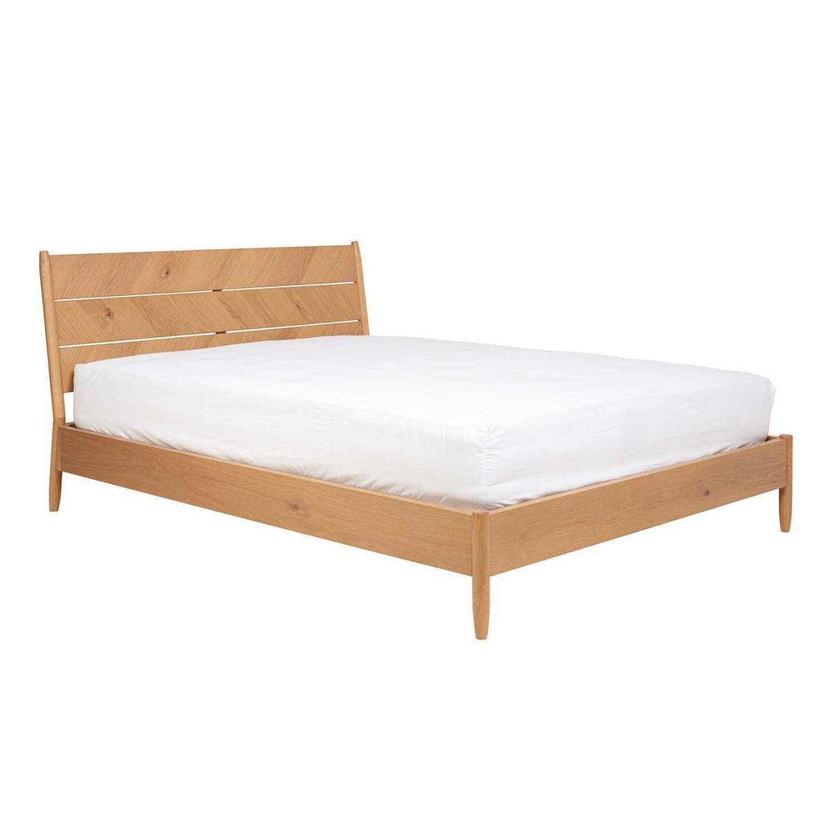 Design. Available as a double orking-sizedframe. The Monza Bed has a unique look that fits well within a modern home. Tapered legs andpatina oakcreates a dimensional look thatspeaks for itself. Chevron detailing has a tactile finish which nods to mid-century design influences. The Monza Bed hasprespringwooden slats that offer optimum support and comfort for your mattress, ensuring a quality night sleep.