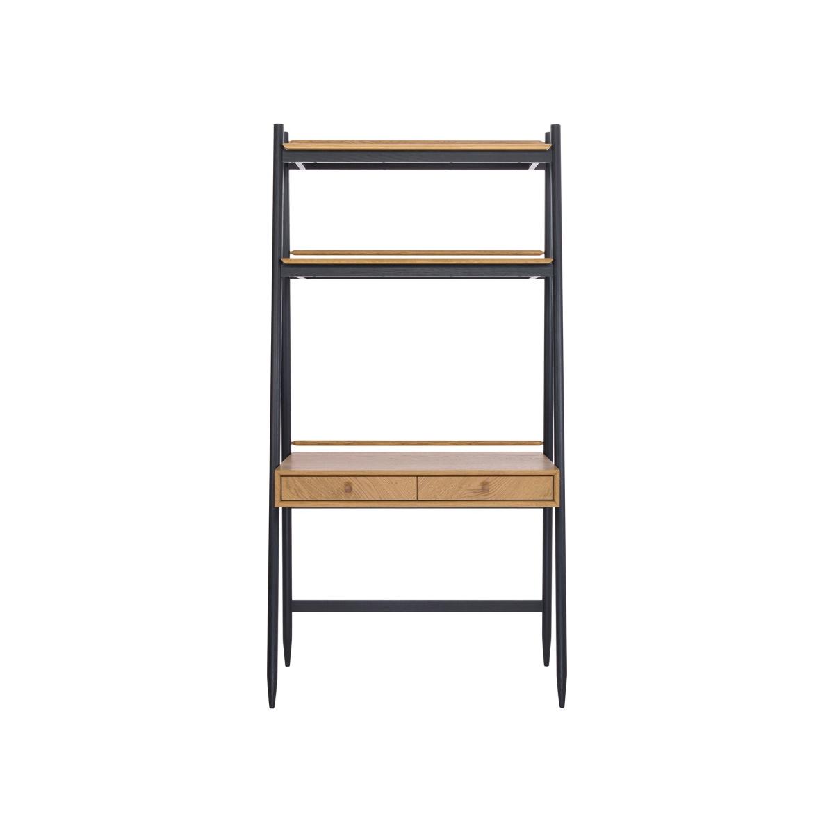 The Monza desk is crafted from solid oak wood with sleek black legs, this versatile desk blends durability with modern style. Featuring two spacious drawers and open storage shelves, it offers practical organisation for any space. Ideal for the living room, office, or dining area, its clean design and natural finish make it a stylish and functional centerpiece for everyday use.