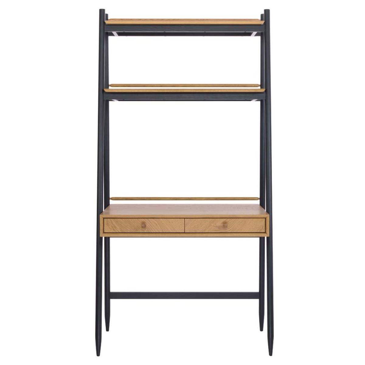 Suited for a bedroom or living space, this contemporary desk offers a generous working space with plenty of storage to help keep you organised.  Available in Patina Oak with legs in Black finish only.