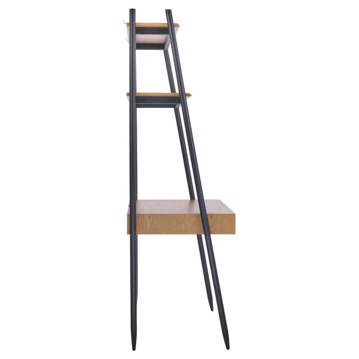 I love this desk for its sleek yet minimalist design, making it a versatile piece that works well in both contemporary and more eclectic interiors. The blend of wood and metal lends it an understated sophistication that can be styled with modern accessories or balanced with cosy, textured items for a more relaxed feel. It’s perfect for small spaces where you want a functional work surface without sacrificing style. A handy tip is to keep the top clear for a clean look, adding a simple lamp or a few curated desk accessories. For a lived-in look, pairing it with a vintage chair or some colourful storage boxes can create a practical yet styled workspace.