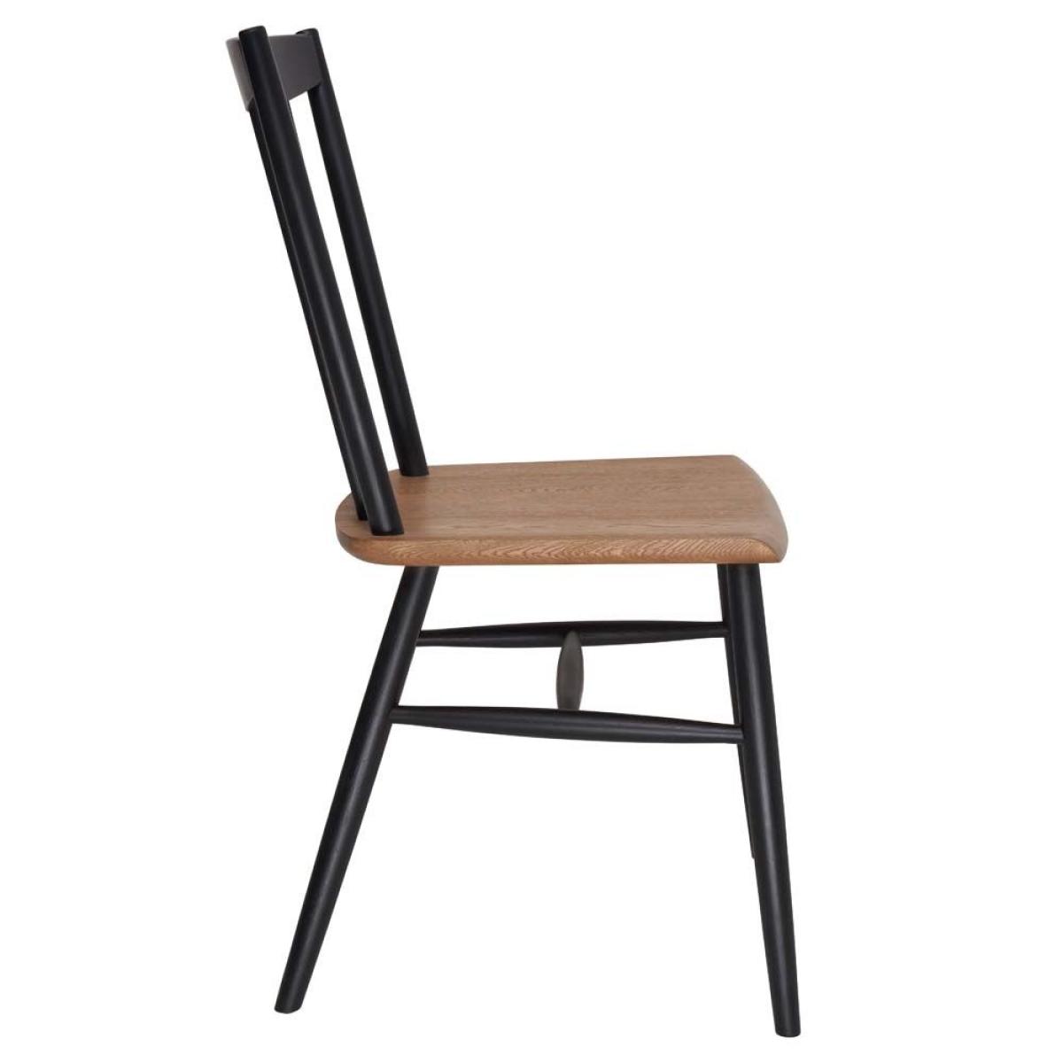 The Ercol Monza dining chair features handsome spindles crafted from Patina Oak, outlined by a black frame that complements and contrasts with the textured oak seat. For a modern look the Monza dining chair can be mixed with the Como chair or the Monza bench.