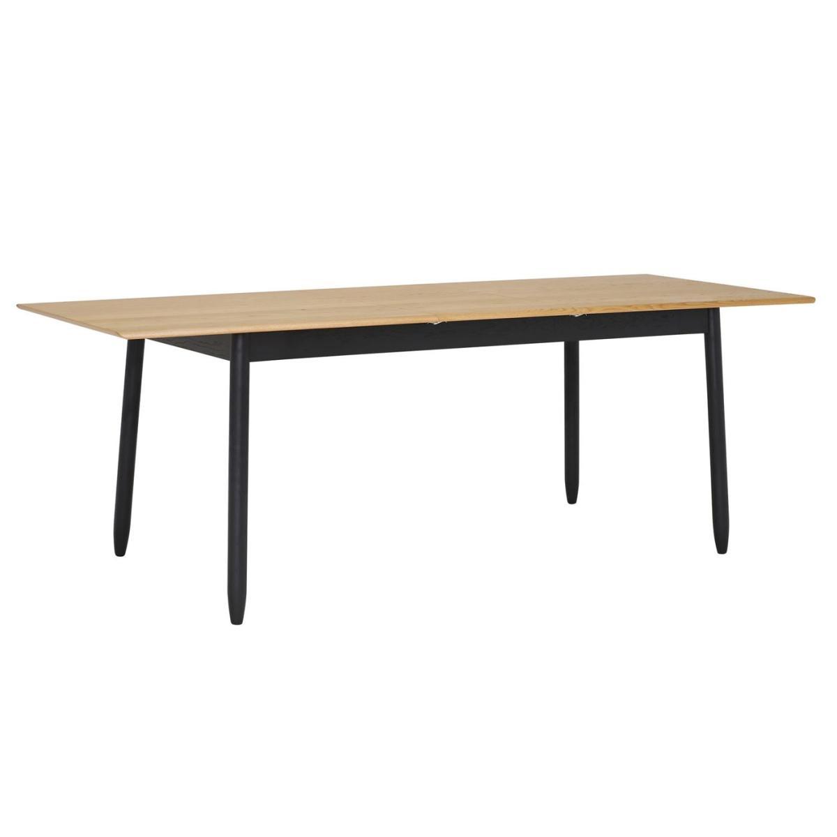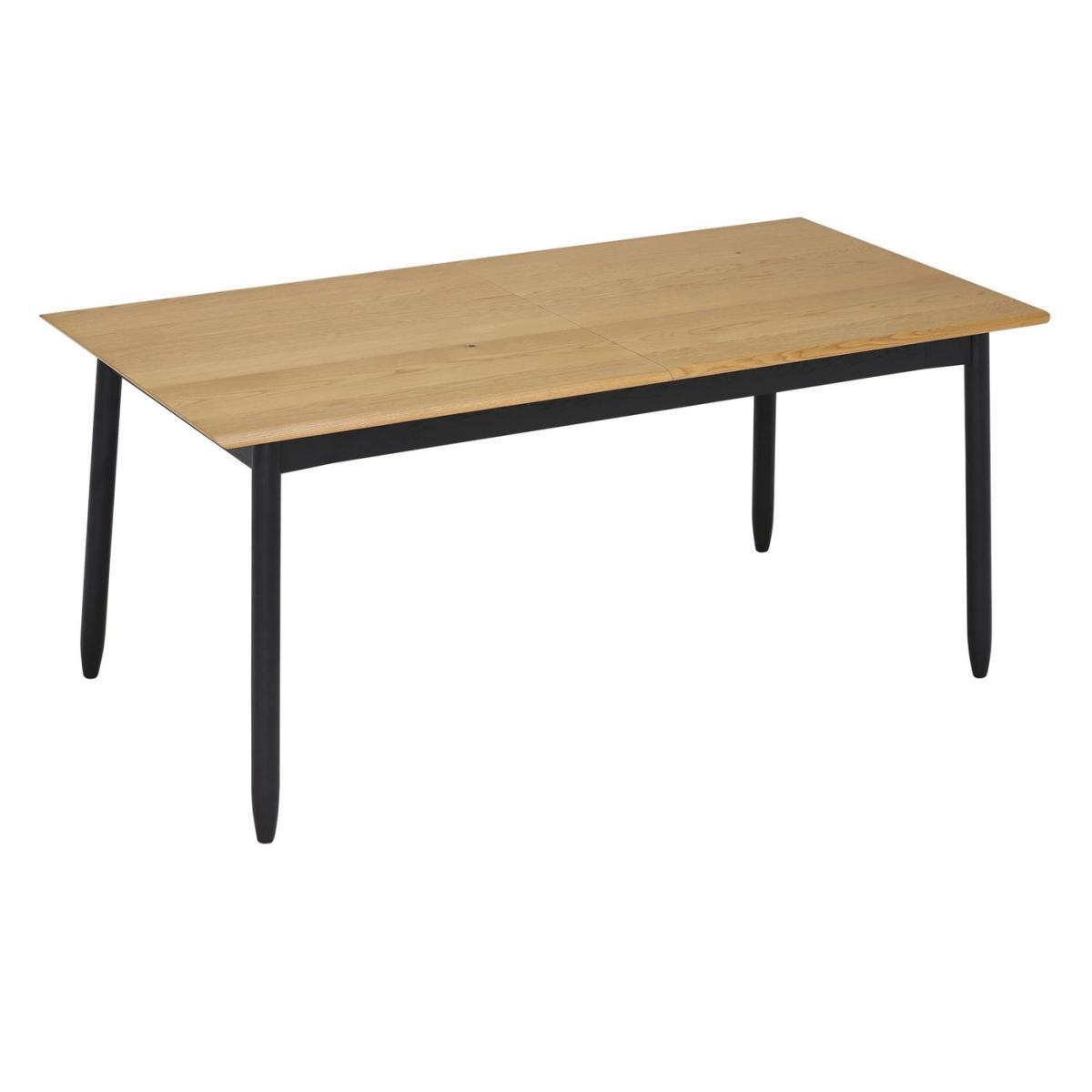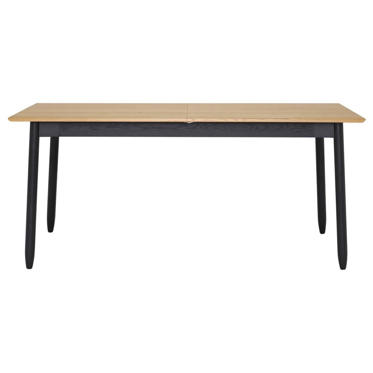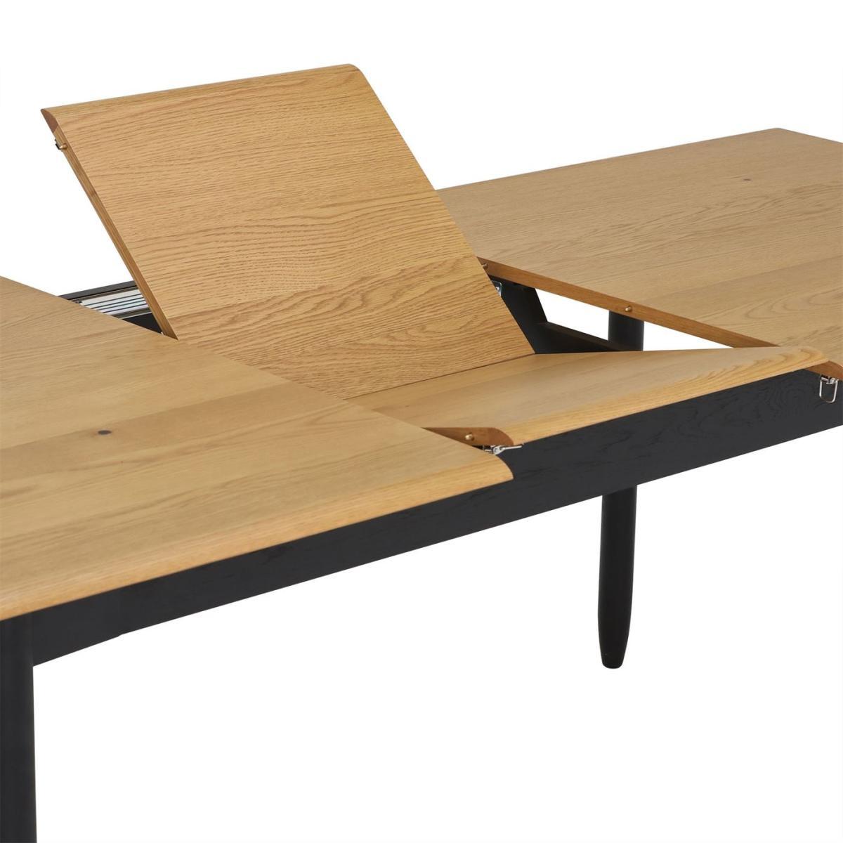 Design. The Ercol Monza Medium Extending Dining Table is simplistic in its appearance, blending in with an array of interior styles. The slim black legs hold up the solid and veneered oak top, not forgetting the extendable feature with a butterfly mechanism for ease of use. The leaf of the Ercol Monza Medium Extending Dining Table is stored inside the table for a sleek finish, the perfect table choice if you love to be the host.