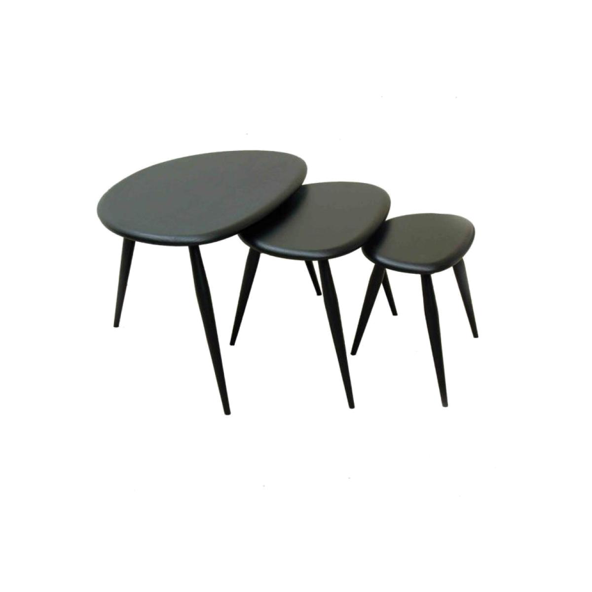 Offering maximum flexibility, this classic piece of furniture comprises three individual tables where the smaller tables slot neatly underneath the large one to save space when not in use. The 354 nest is affectionately known as the 'pebble' nest owing to the shape of the table tops. The fluid curves and tapered table legs offer a simple and distinctively ercol design. This furniture will be finished in your choice of our painted colour finishes, which protect the timber as well as fitting in with your style and decor. W 65cm D 51cm H 40cm Elm and Beech. Made in the UK. * Please Note: Wood finishes and colour samples are shown for guidance only as screen colours may vary. We would recommend ordering a sample in your chosen finish. However, wood is a natural material and varies in colour, grain and structure. Please contact your nearest ercol stockist to check they have the product on display before you visit.