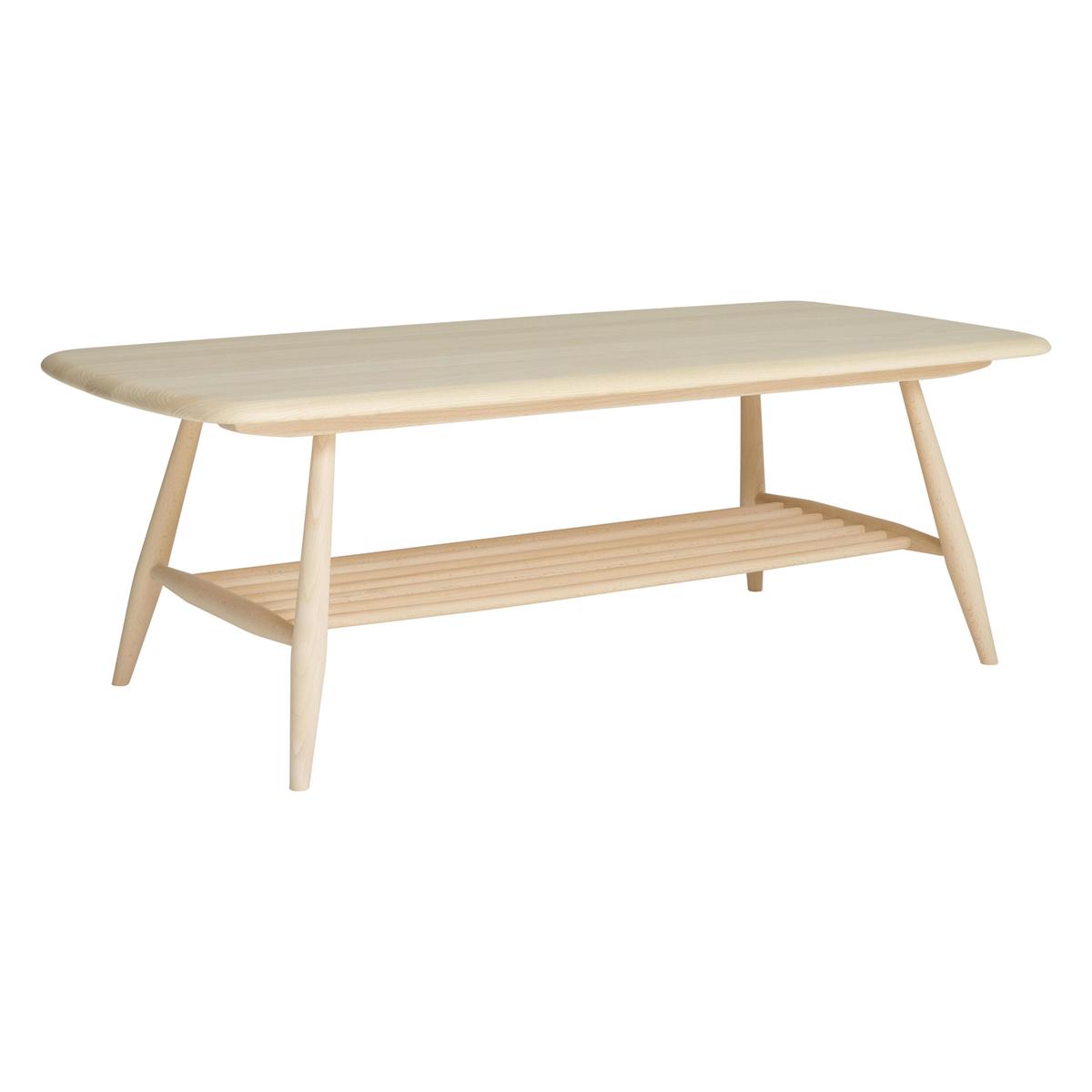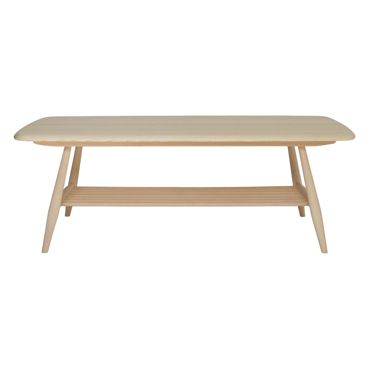 An ercol design classic, first produced in the 1950s. Distinctive mid-century modern style. Beautifully crafted from solid ash and beech. Beautiful and charming, the ercol Originals coffee table brings mid-century modern style and elegance to your living room. It’s also, like so many ercol pieces, extremely functional and practical, thanks to the large but narrow top and useful shelf. But it’s the craftsmanship and the details that we really love about this classic design. From the rounded-end top to the sturdy splayed legs to the shelf composed of multiple spindles, it’s a wonderful piece of design beautifully crafted in solid ash and beech. It’s available in a choice of finishes and natural wood tones, so whether your home is resolutely mid-century modern or simply modern, you’ll find an ercol Originals coffee table to suit. The ercol Originals coffee table is part of the ercol Originals collection, a carefully curated range of iconic ercol designs from the 1950s, crafted for today's home. The collection also includes the ercol Originals nest of tables and the ercol Originals plank table. Did you know? Natural wood has unique markings, with some colour variation. The colour and tone of wood improves with age.