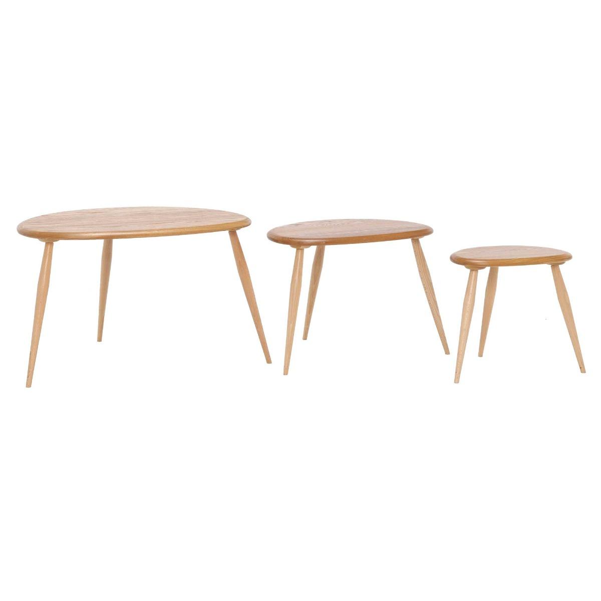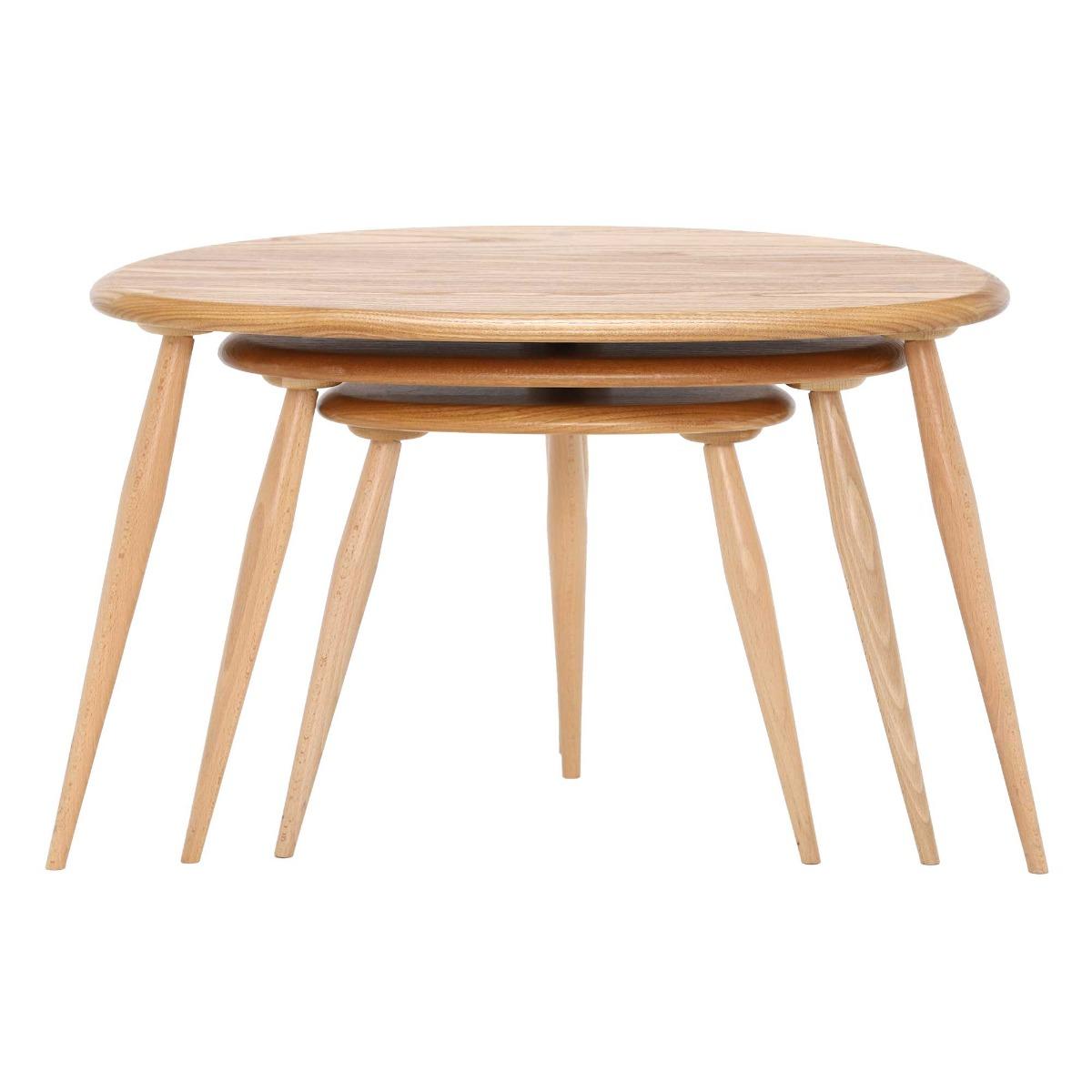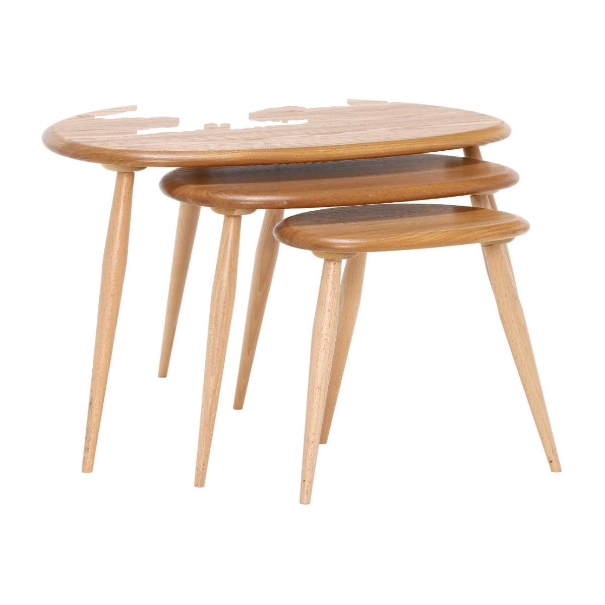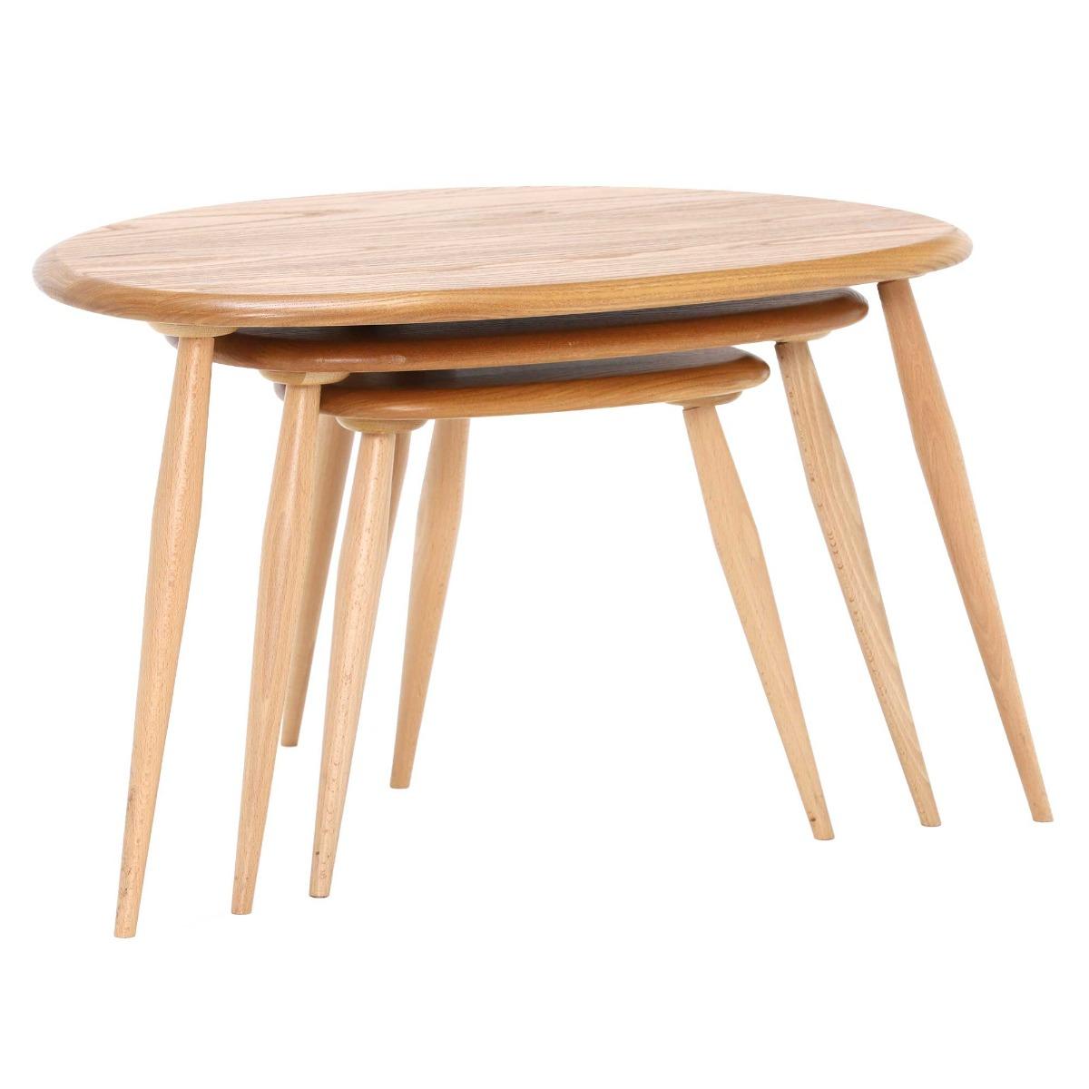 Contemporary and oozing minimalistic elegance, the Ercol Pebble Nest of Tables is a classic piece of furniture comprising three singular tables perfectly sized to situate neatly underneath each other, perfect for space saving! Showcasing fluid curves and tapered legs, these tables offer a simple and unique design, reflecting the history of the first one ever created in the 1950rsquo;s.