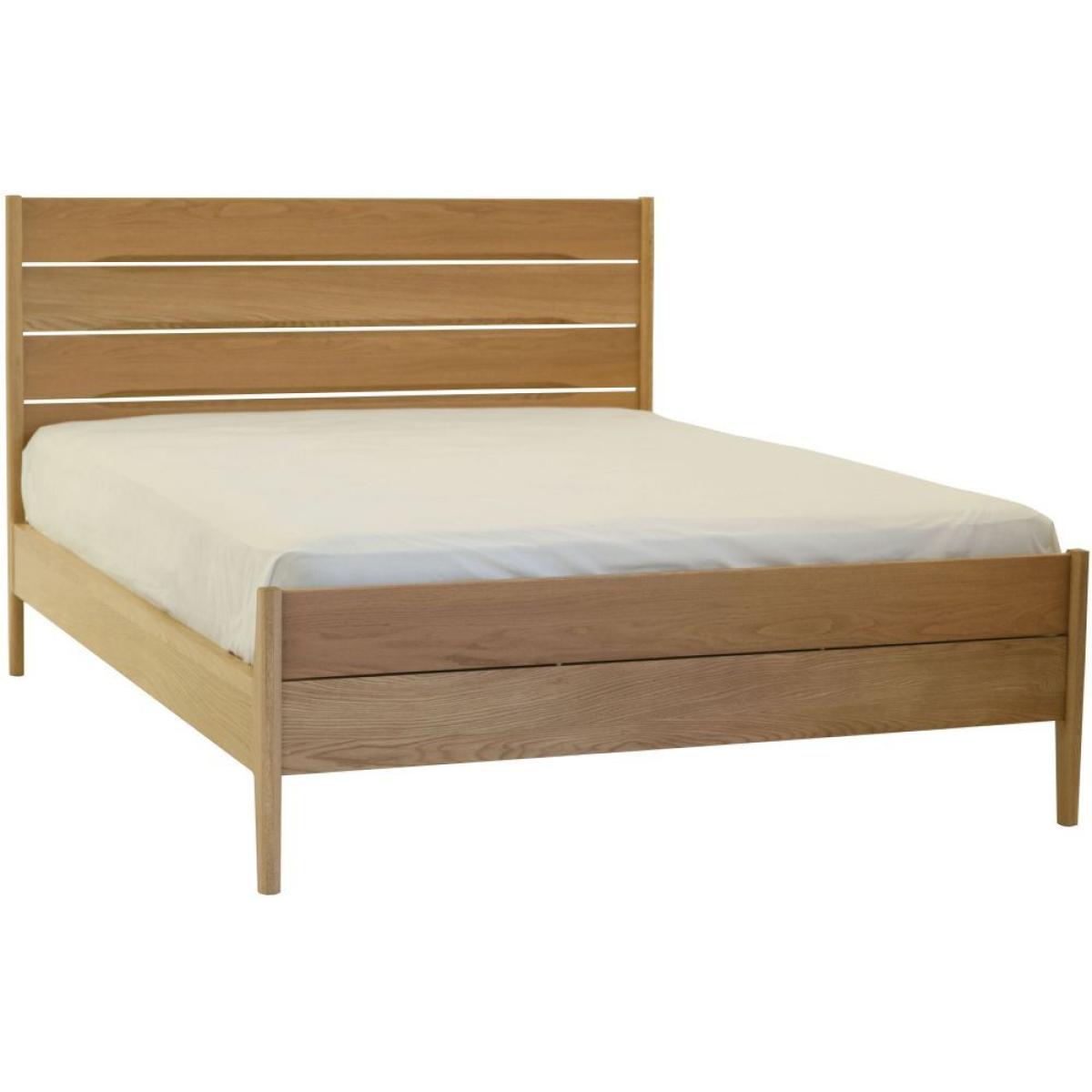 Softly tactile, the rise and dip of the carved indent, or chamfer, the Rimini bedroom range has been designed to induce a feeling of calm and relaxation. Thoughtfully designed the flowing lines have no sharp edges, this cohesive, collection of matching pieces will enhance any bedroom. The panelled headboard design is strong and contemporary; the scalloped lines give the piece interesting shadow lines and tactile detail. The chests and the wardrobe share the same curved cut out feature where the sculpted indents in the drawer front provide drawer pulls. On the tall chest and the bedside cabinet the drawers echo the scalloped handle detail giving an elegant and practical interpretation of the signature lines. Rimini is solid oak and oak veneer finished in a clear matt lacquer. This smooth contemporary understated chamfered planked headboard in pale oak is a signature feature of the Rimini bed. Setting the tone for this good-looking collection, the flowing lines within smooth wood provide a visual focus to the piece. The chamfered, sculpted planks of the headboard are reflected in the single plank at the base of the bed supported by softly turned legs. Double Dimensions- W 144 x D 200 x H 110cm King Dimensions - W 159 x D 210 x H 110cm Solid Oak and Oak Veneer Available in one finish - Clear Matt Oak Assembly Required Mattress shown is not included Please note: Wood finishes and colour samples are shown for guidance only as screen colours may vary. As wood is a natural material and varies in colour, grain and structure, a slight variation between pieces is perfectly normal.
