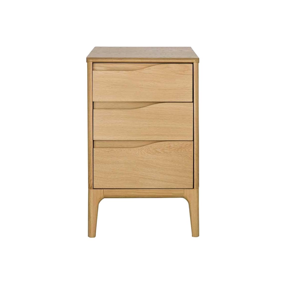 Created by the ercol Design Studio, the oak Rimini Bedside Table boasts three drawers to provide practical bedroom storage.
