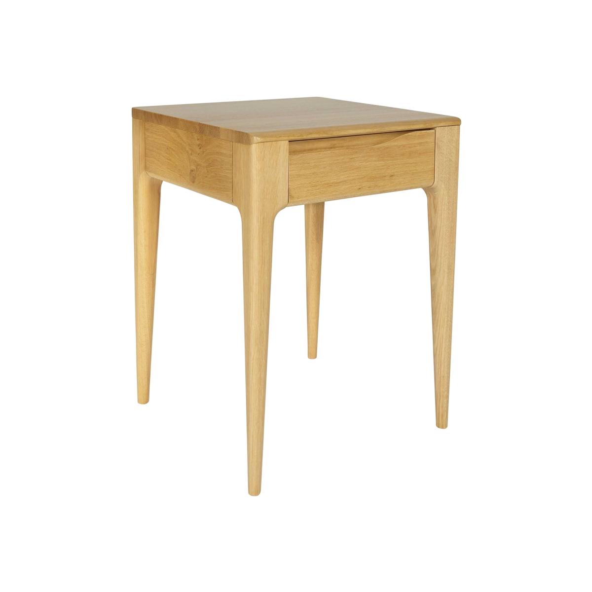 Design. The Romana oak lamp table includes a slimline drawer for storing small items. The front edge of the table top bears the signature soft curve, and the legs have the fluid organic curves and chamfers that, characterise Romana.