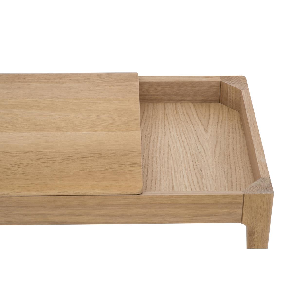 If you choose only one piece of ercol furniture, make it the ercol Romana coffee table. A design classic, this fantastic coffee table combines iconic ercol style with modern utility. Exquisitely crafted from solid pale oak, this table has rounded edges, a curved front edge, chamfered legs and, usefully, a top that smoothly slides to reveal a recessed storage space for TV magazines and remote controls. Its finished with a protective clear matt lacquer that enhances the beautiful natural wood grain. The ercol Romana coffee table is part of the extensive ercol Romana range. Sideboards and extending dining tables feature prominently in the collection, which also includes two styles of dining chair, a highboard and the ercol Romana lamp table which offers, like the coffee table, functional storage. Did you know? Natural wood has unique markings, with some colour variation. The colour and tone of wood improves with age.