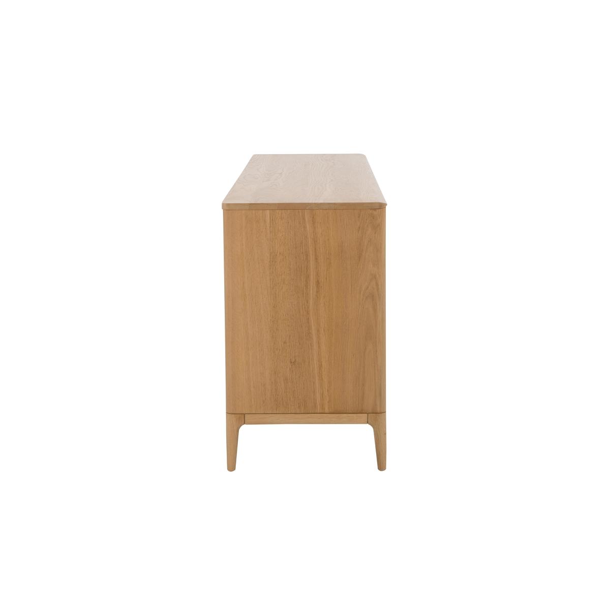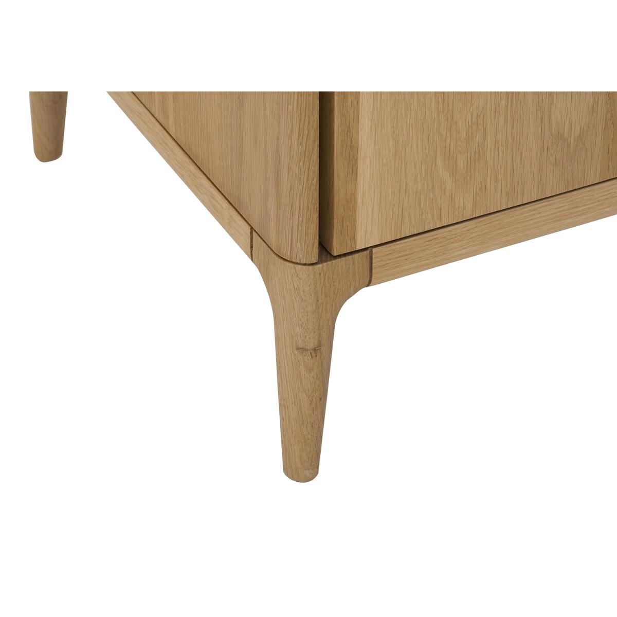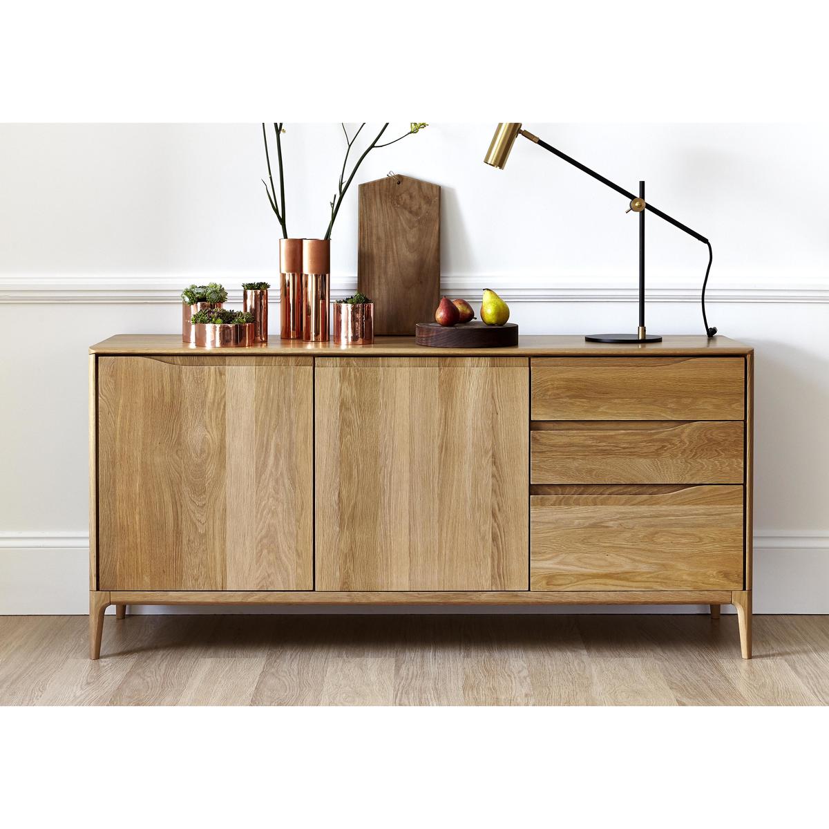 The Romana dining collection offers the comfort, functionality and beauty you expect from renowned furniture makers ercol. Their famous design flair is shown in the furniture’s soft curves, subtle detailing and low contemporary silhouettes. Each exquisite piece is expertly crafted from pale oak, with a clear matt lacquer showing off the natural beauty of the grain. With its clean lines, smooth finish and well-designed storage, the ercol Romana large sideboard feels right at home in any contemporary setting. Showcasing a striking mid-century modern aesthetic, it’s crafted from solid pale oak and finished with a wood grain-enhancing protective clear matt lacquer. It has two single door cupboards, each with an adjustable shelf, and three roomy drawers, two smaller and one deeper. Doors and drawers are soft-close and have beautifully-rendered recessed handles. The legs are chamfered – a classic ercol style touch – and it has with a neat bevelled surrounding edge. The ercol Romana large sideboard is part of the Romana collection of beautiful furniture for dining and living spaces. This sideboard is one of four storage pieces, and the range also includes a coffee table and a lamp table. WARNING!. Furniture can tip over unexpectedly and cause injury. This item shall be fixed to a wall using the anti-tip kit provided with the furniture. Be sure to use the correct wall fixings suitable for the walls in your home. Did you know?. Natural wood has unique markings, with some colour variation. The colour and tone of wood improves with age.