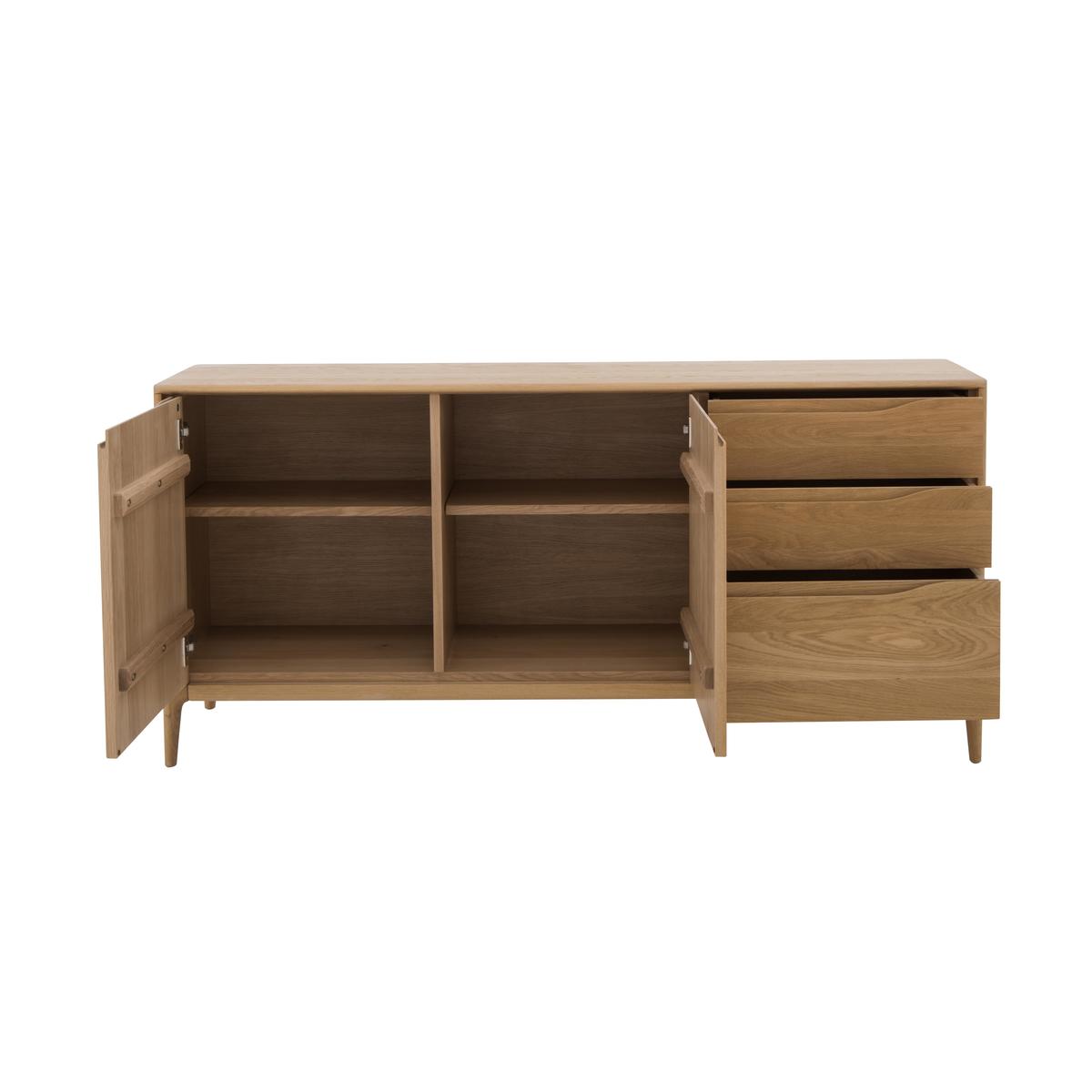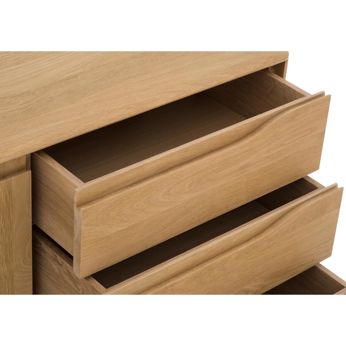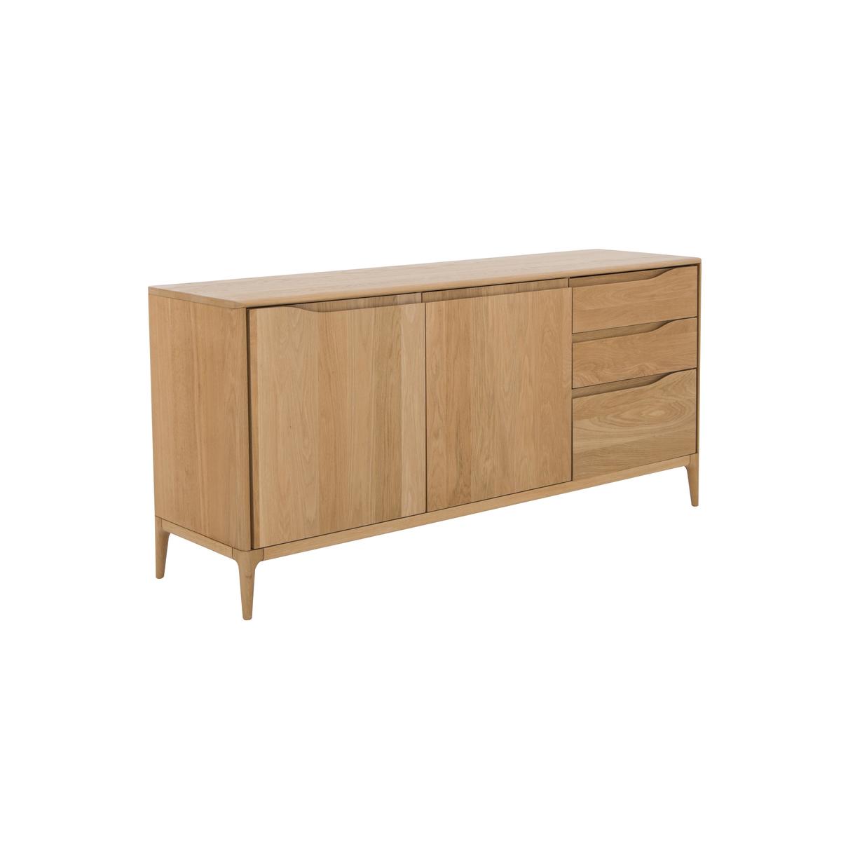 The Romana dining collection offers the comfort, functionality and beauty you expect from renowned furniture makers ercol. Their famous design flair is shown in the furniture’s soft curves, subtle detailing and low contemporary silhouettes. Each exquisite piece is expertly crafted from pale oak, with a clear matt lacquer showing off the natural beauty of the grain. With its clean lines, smooth finish and well-designed storage, the ercol Romana large sideboard feels right at home in any contemporary setting. Showcasing a striking mid-century modern aesthetic, it’s crafted from solid pale oak and finished with a wood grain-enhancing protective clear matt lacquer. It has two single door cupboards, each with an adjustable shelf, and three roomy drawers, two smaller and one deeper. Doors and drawers are soft-close and have beautifully-rendered recessed handles. The legs are chamfered – a classic ercol style touch – and it has with a neat bevelled surrounding edge. The ercol Romana large sideboard is part of the Romana collection of beautiful furniture for dining and living spaces. This sideboard is one of four storage pieces, and the range also includes a coffee table and a lamp table. WARNING!. Furniture can tip over unexpectedly and cause injury. This item shall be fixed to a wall using the anti-tip kit provided with the furniture. Be sure to use the correct wall fixings suitable for the walls in your home. Did you know?. Natural wood has unique markings, with some colour variation. The colour and tone of wood improves with age.