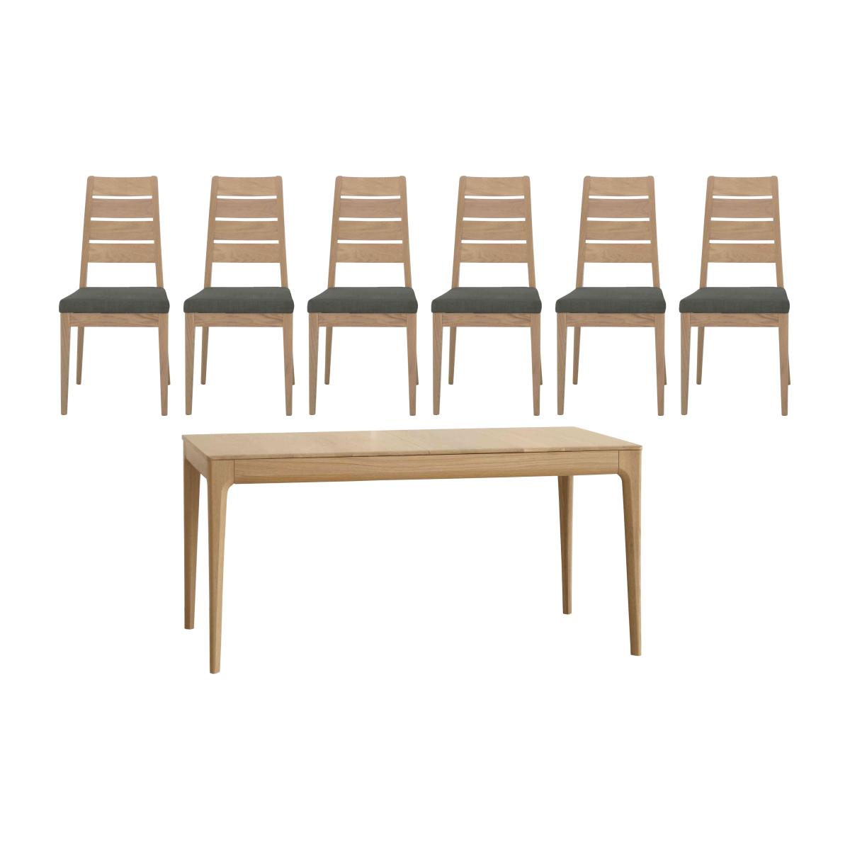 The Romana dining collection offers the comfort, functionality and beauty you expect from renowned furniture makers ercol. Their famous design flair is shown in the furniture’s soft curves, subtle detailing and low contemporary silhouettes. Each exquisite piece is expertly crafted from pale oak, with a clear matt lacquer showing off the natural beauty of the grain. If you’re a fan of mid-century modern style, you’ll love this dining set. It’s classic Ercol through and through, from the wonderful oak craftsmanship to those iconic mid-century curves. Why you'll love it Classic Ercol dining set at a great-value price. Mid-century modern style. Extending dining table is crafted from solid light oak. Table has rounded-edge top and chamfered legs. Finished with a clear matt lacquer. Extends with a simple butterfly mechanism. With 6 Ercol Romano slatted oak dining chairs. Chairs have elongated backs with four board horizontal slats. Fabric upholstered cushioned seats. The perfect style for your cool and contemporary home. What you need to know Dining table extends to seat 8. As oak is a natural material, knots, markings and colour variation are to be expected. Avoid placing in direct sunlight, and take care to use coasters and placemats. Part of the Ercol Romano collection at Furniture Village.