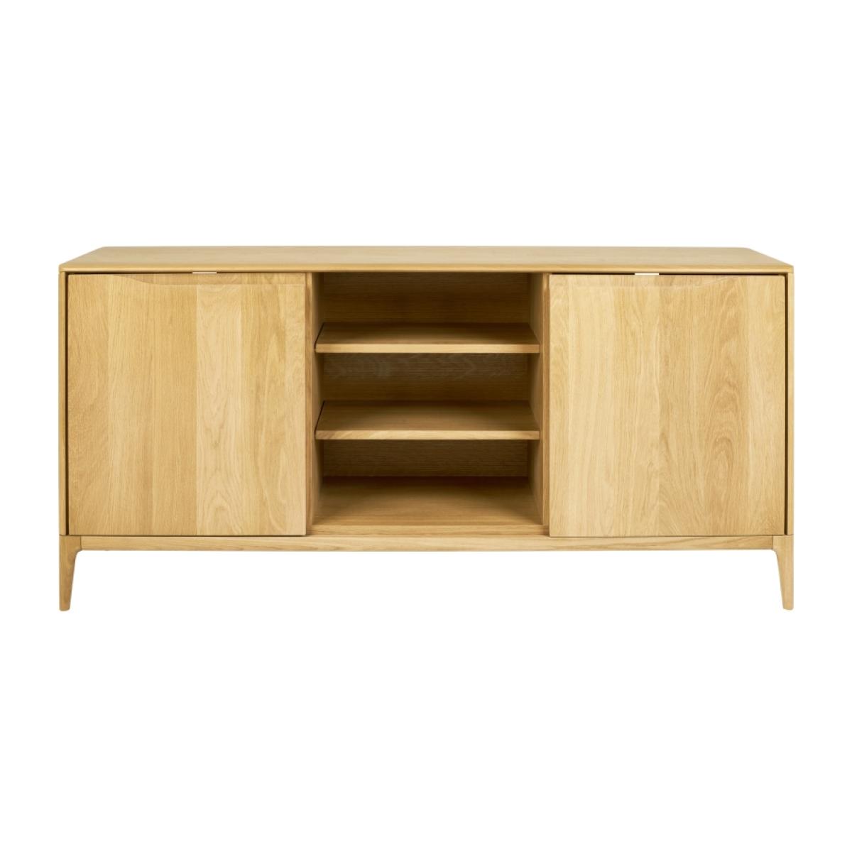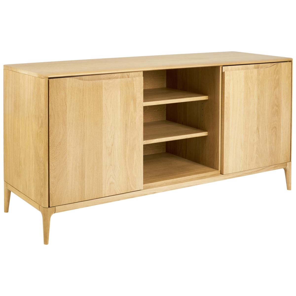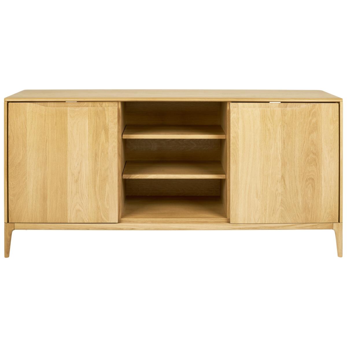 New to the ercol range in 2024 is the addition of the Open Media Sideboard to the highly successful Romana range. Each piece has cable management holes as well as adjustable shelves in the cupboards. As with the rest of the Romana collection, these pieces are made in the ercol Princes Risborough factory from solid oak and have the same design elements, finished in a clear matt lacquer. The Romana collection is perfect in an open plan living space. Features: Cable management holes Adjustable shelves Fully Assembled Solid Oak with a Clear Matt finish Handmade in the UK Dimensions: Width: 160cm Depth: 45cm Height: 75cm All screens vary in colour reproduction and whilst every effort has been made to display the colour as accurately as possible it is for guidance only.