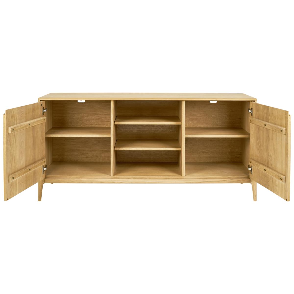 I’m a fan of the Romana sideboard for its slim, mid-century proportions and warm oak finish - it slots equally well into Scandi-inspired minimalism, contemporary living rooms or even a relaxed home office. The open shelves are ideal for routing AV cables or displaying your favourite art books, while the cupboard doors keep less attractive bits hidden. Styling-wise, use the top surface for a low cluster of ceramics or a statement lamp, then balance out the open centre with a couple of matching baskets or neat boxes. Keep decorative items in groups of three, varying heights, and leave enough breathing space so the sideboard’s clean lines remain the focal point.