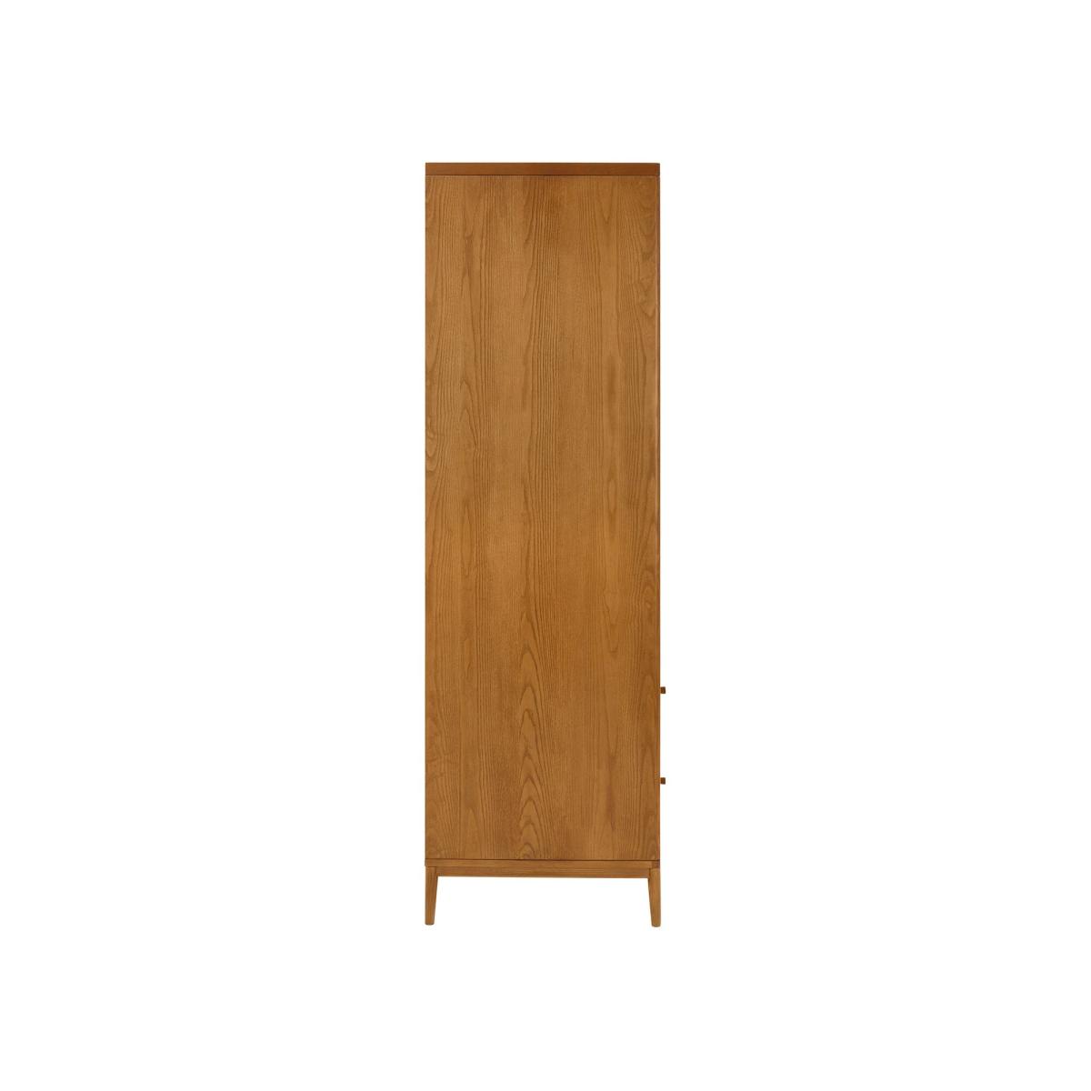 I love this wardrobe for its clean lines and timeless appeal, making it a versatile piece that suits both modern and traditional interiors. Its warm wood finish adds a natural touch, complementing neutral tones or contrasting beautifully with bold colours. It works particularly well in bedrooms with Scandinavian or minimalist aesthetics, where functional simplicity is key. For practical styling, try pairing it with geometric or textured accessories on top, such as a few ceramics or a sleek lamp, to add visual interest. Inside, using organisers or hanging baskets can optimise storage and keep everything tidy. Overall, it’s a smart choice for anyone wanting a stylish, yet practical wardrobe that brings warmth and character to the space.