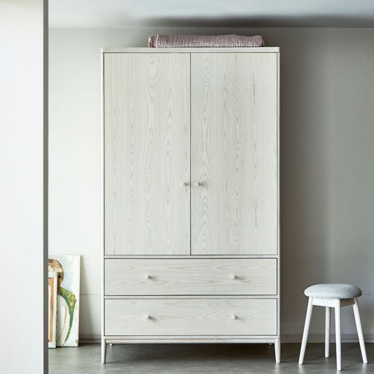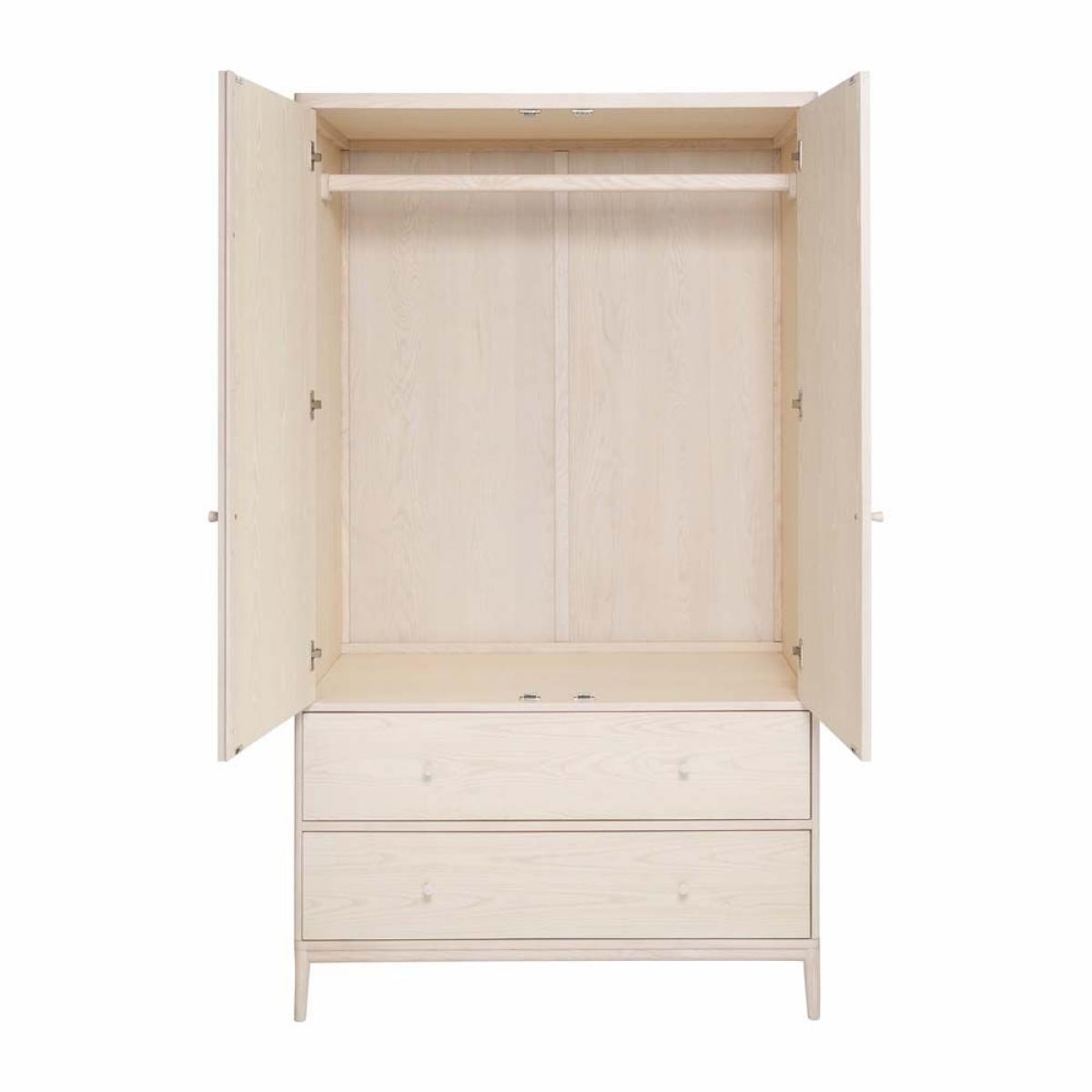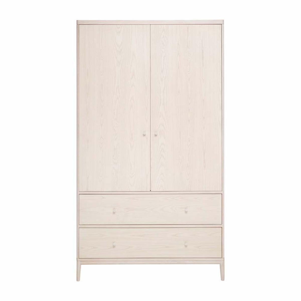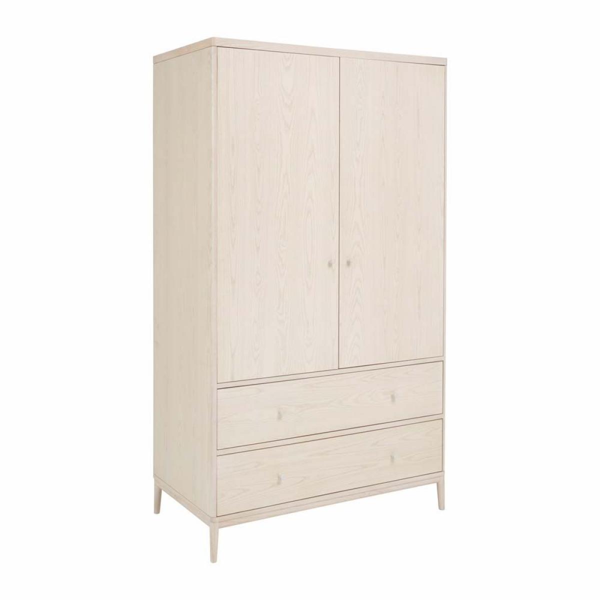 The contemporary Salina 2 door wardrobe offers substantial storage space with a sturdy wooden hanging rail and 2 generous drawers beneath the main storage it offers the perfect storage for all of your clothes. It is finished in pale ash with a white washed stain and clear matt lacquer which displays the pattern of the grain through the finish creating a very stylish look in any bedroom.