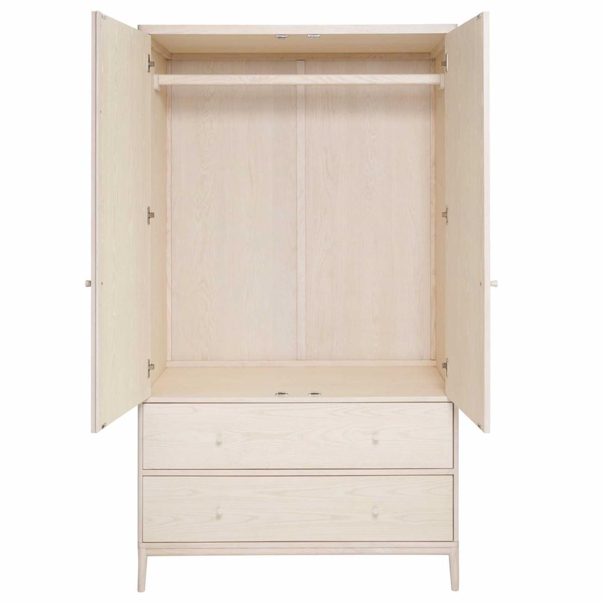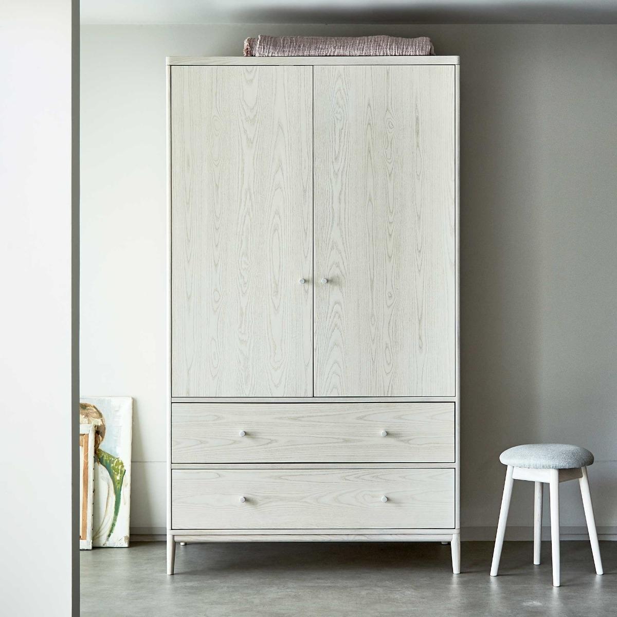 Design. Neat and clean in design, the Salina wardrobe offers substantial storage with its spacious interior, sturdy wooden hanging rail and generous drawers beneath. Crafted from ash, this wardrobe boasts a beautiful pale finish that catches the natural grain markings of the wood perfectly, while bringing a minimalist and fresh look to your bedroom interior.