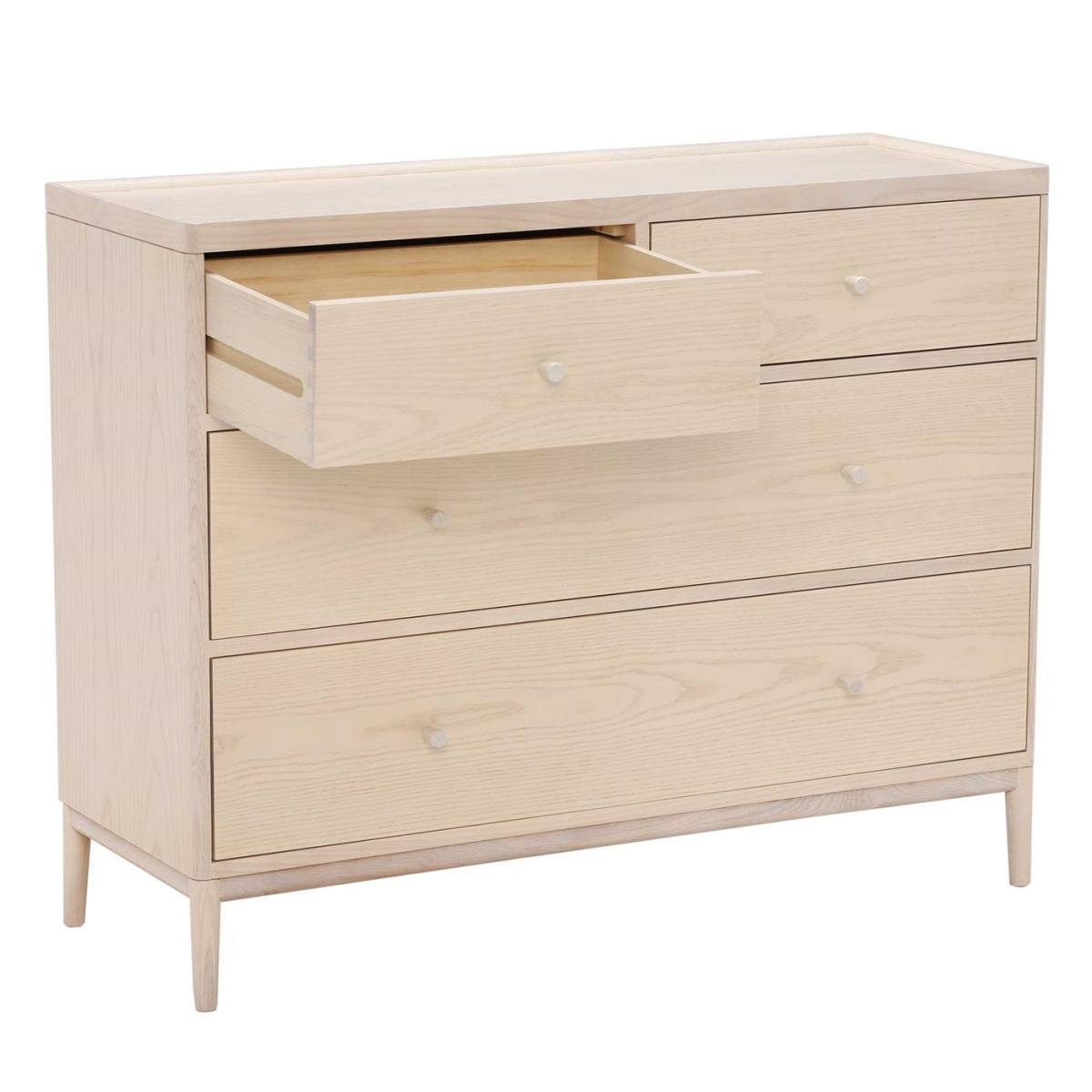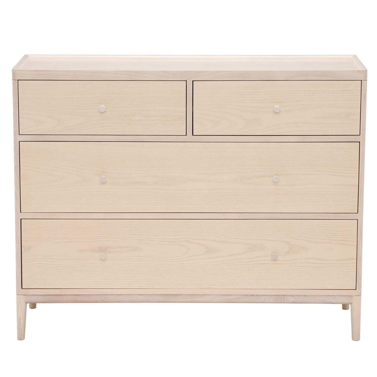 Design. The Salina 4 drawer chest stays in keeping with the range, boasting its familiar pale ash finish that’s both stylish and calming. With petite handles and a frame to match, the Salina has a minimalist feel that will blend well within many contemporary settings. Featuring 2 full size deep drawers and 2 smaller, this Salina chest offers ample storage for clothing or soft furnishings while its practical tray top is there for you to make pretty with many of your most favoured decorative items.
