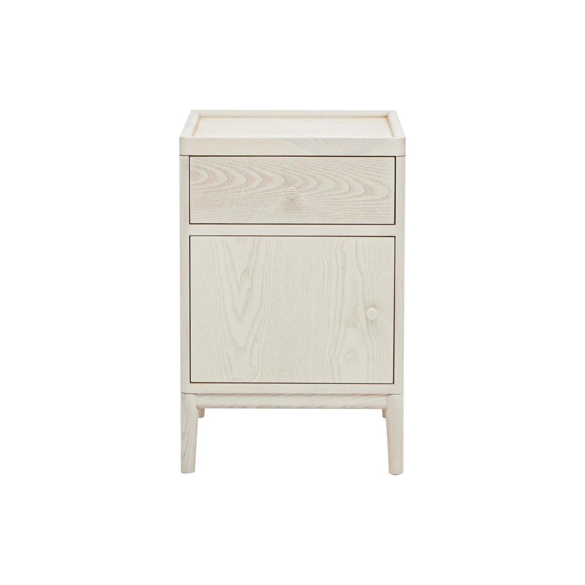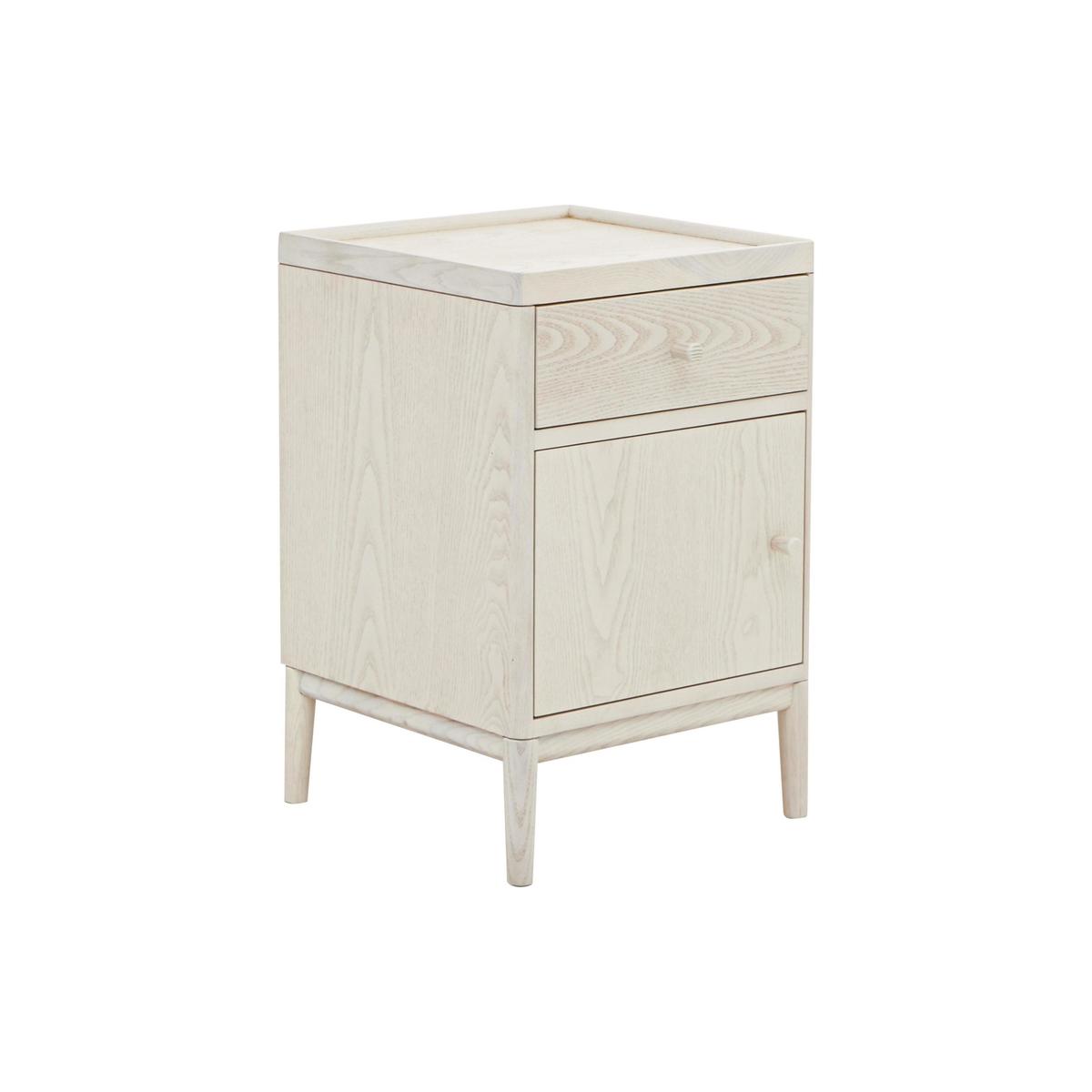 Contemporary bedroom style from iconic furniture maker Ercol. Beautifully crafted from solid ash and ash veneer. With a fashionable wood grain-enhancing pale washed finish. Beautiful, functional and well-crafted, the contemporary-style pale wood Ercol Salina bedside cabinet typifies everything that makes Ercol one of Britain's most iconic furniture makers. Made with solid ash and ash veneer and featuring a wood grain-enhancing pale washed and protective matt lacquer finish, this small bedside cabinet packs an exceptional amount of storage space into a compact footprint. There’s a spacious upper drawer, complete with dovetail joints, and a lower cupboard for larger items. Unexpected touches include the tray-style edge to the cabinet top which prevents anything rolling off, neat rounded door and drawer handles, and the fact that the cupboard door can be positioned to open from either the left hand or the right hand side. The Ercol Salina bedside cabinet is part of the Ercol Salina collection at Furniture Village. This modern range includes several sizes of chests of drawers, a wardrobe, a dressing table and a statement bed frame with a padded and upholstered headboard. Fabulous contemporary style from a British original. Did you know? Natural wood has unique markings, with some colour variation. The pieces in the Ercol Salina collection have visible natural wood grain which is enhanced by the pale washed and matt lacquer finish.