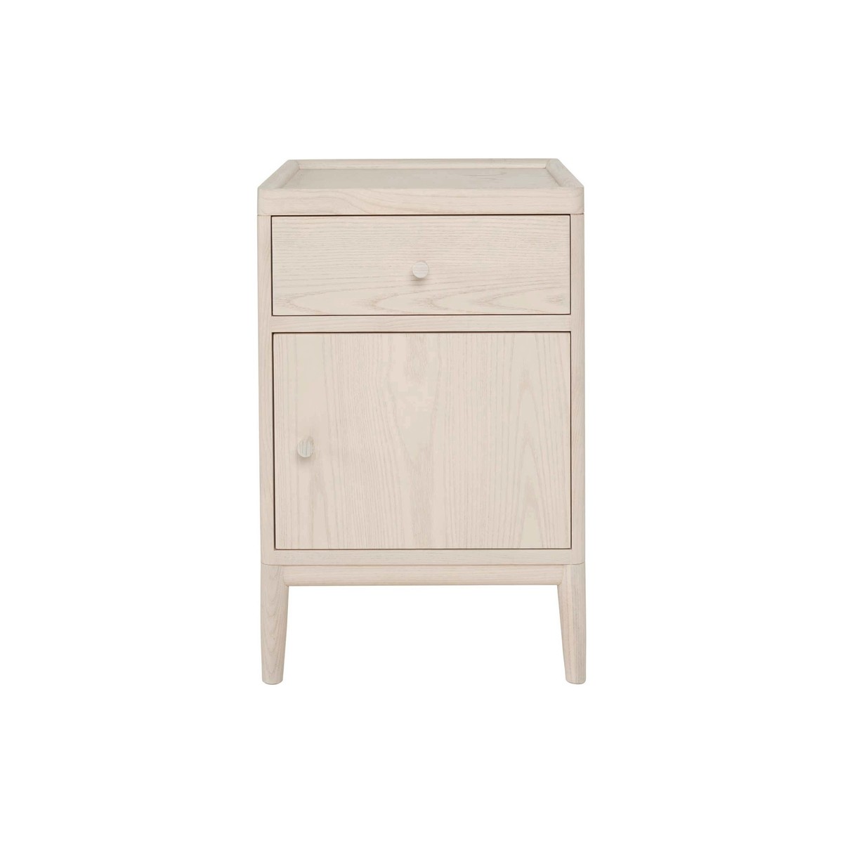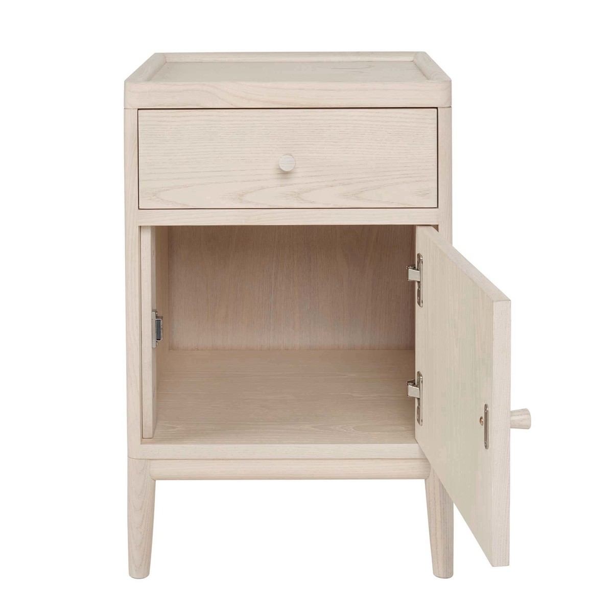 Making the perfect companion to the Salina bed, this charming bedside shares the same beautiful whitewashed finish that characterises the other furniture within the range. With one drawer and a spacious cupboard to keep all your night-time essentials close to hand, its crafted from Solid Ash and Ash veneer and features petite handles which blend beautifully into the design.;We always advise to place one on either side of the bed too, in order to maintain marital harmony. The Salina bedside cabinet boasts a convenient reversible door which can be fitted as required at home.