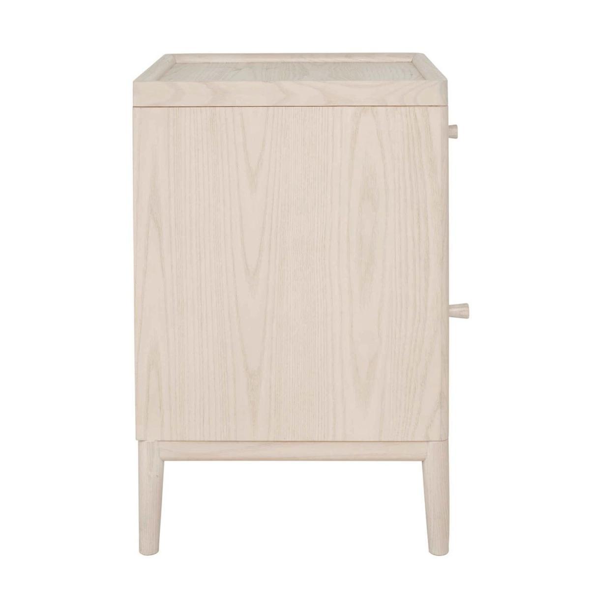 Design. Making the perfect companion to the Salina bed, this charming bedside shares the same beautiful whitewashed finish that characterises the other furniture within the range. With one drawer and a spacious cupboard to keep all your night-time essentials close to hand, its crafted from Solid Ash and Ash veneer and features petite handles which blend beautifully into the design. We always advise to place one on either side of the bed too, in order to maintain marital harmony. The Salina bedside cabinet boasts a convenient reversible door which can be fitted as required at home.