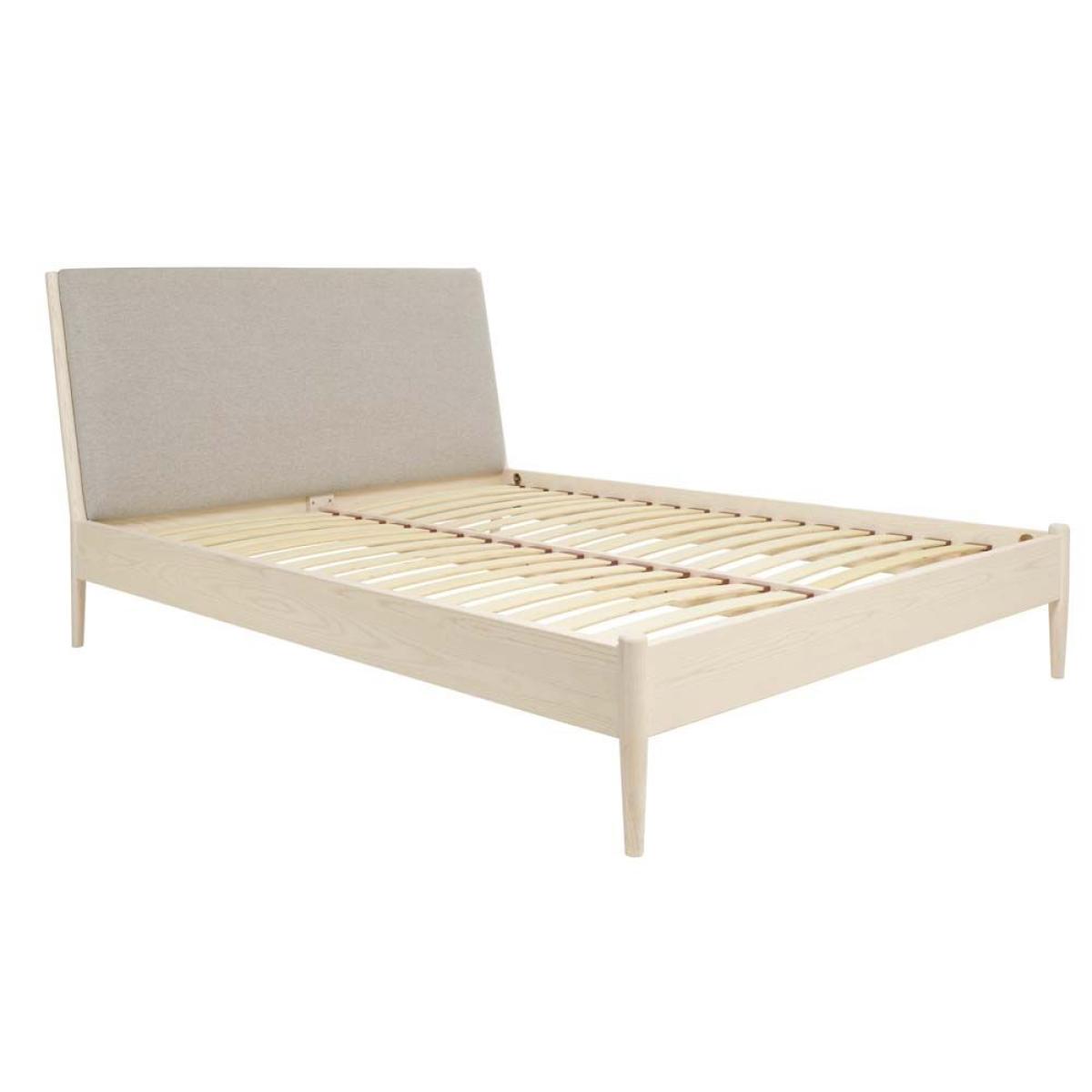 A contemporary bedroom collection in pale ash, finished with a white washed stain and clear matt lacquer which displays the pattern of the grain through the finish. The statement Salina kingsize bed has a headboard upholstered in a soft grey toned fabric to complement the paleness of the timber finish. The bed has presprung wooden slats to help give you a good nights sleep. Solid Ash amp; Ash Veneers. Dimensions: W160cm x D218cm x H104cm to fit mattress 150x200cm. Self Assembly required