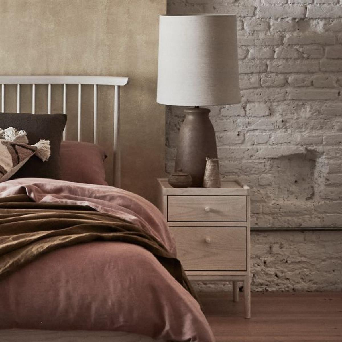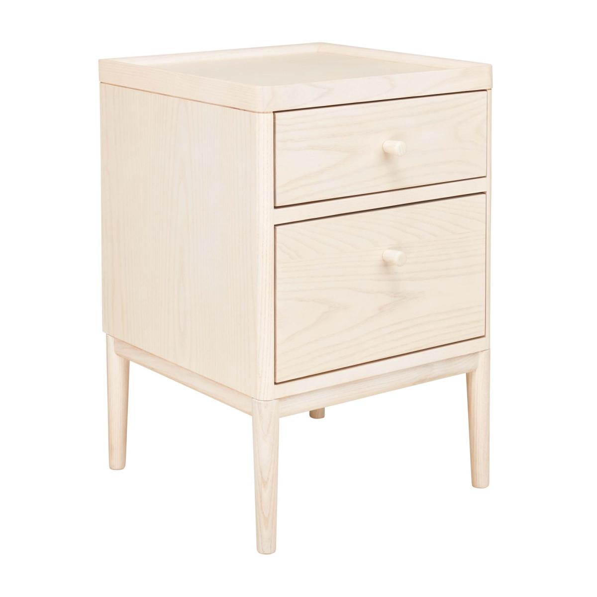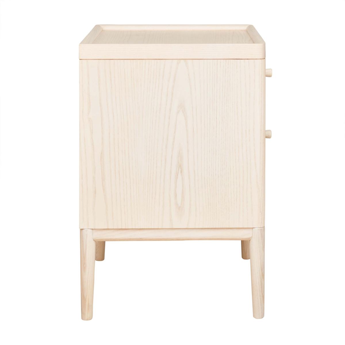 The new Salina two drawer bedside cabinet is a practical addition to the Salina Collection. It has the same practical tray top as the rest of the range which prevent items rolling off the surface. This useful cabinet has two drawers one for smaller precious items and the other deep for capacious storage finished in a white washed stain and clear matt lacquer to sit perfectly beside the Salina spindle bedstead. Ercol Code 3885. Dimensions W40cm x H60cm x D40cm Ash wood in construction Pale timber finish available. Fully Assembled. Simple self assembly