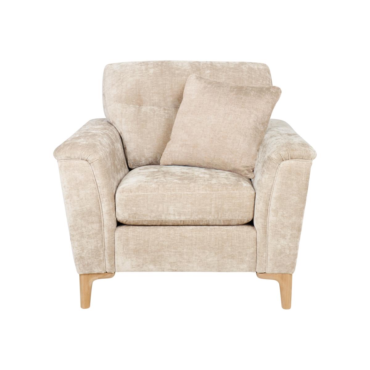 The Ercol Sandford Chair is a beautifully crafted piece that embodies timeless elegance and comfort. Designed with a classic yet contemporary aesthetic, this chair features a solid wood frame made from sustainably sourced ash, expertly shaped and finished to highlight the natural beauty of the wood grain. The chair's ergonomic design includes a gently curved backrest and supportive armrests, ensuring comfort and style in equal measure. Upholstered in high-quality fabric, the cushioned seat provides a plush sitting experience, making it perfect for dining, lounging, or as an accent piece in any room. The Ercol Sandford Chair is a testament to craftsmanship and design, offering a versatile and sophisticated addition to any home. The refined and elegant ercol Sandford Chair has modern scroll arms and curved legs inspired by the ercol Romana collection. The range features a high back with a classic sit. Features: Static Chair Modern scroll arms Curved legs High back Classic sit Available in the new Casa collection of fabrics A choice of wood finishes for the legs Chair Dimensions: Width: 103cm Depth: 143cm Height: 96cm Seat Height: 52cm All screens vary in colour reproduction and whilst every effort has been made to display the colour as accurately as possible it is for guidance only.