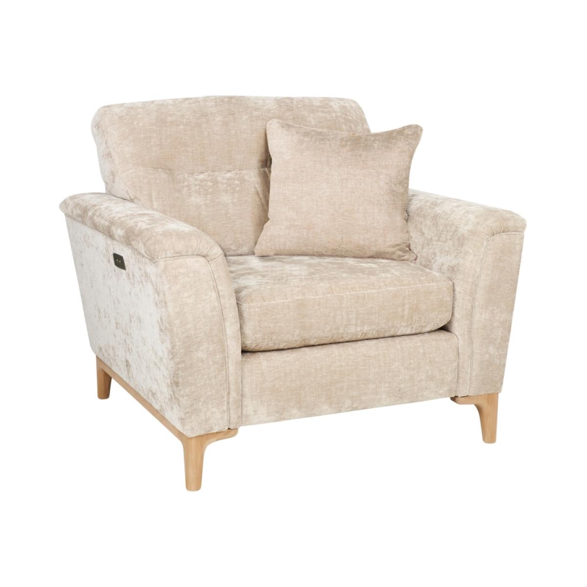 The Ercol Sandford Motion Lounger Snuggler is the ultimate comfort piece, designed for those who seek both style and relaxation. This generously sized snuggler offers ample space for one to curl up or even for two to cuddle, making it a perfect spot for cozying up with a book or enjoying a movie night. Crafted from sustainably sourced solid ash wood, it features Ercol’s signature craftsmanship, with sleek lines and a natural wood finish that adds elegance to any room. What sets this snuggler apart is its smooth powered footrest mechanism, which allows you to raise your legs to find your ideal lounging position. The plush seat and back cushions are upholstered in high-quality fabric, providing exceptional comfort and support. The ergonomic design, combined with padded armrests, ensures that you can relax in complete comfort. Whether placed in a living room, bedroom, or any cozy nook, the Ercol Sandford Motion Lounger Snuggler is a versatile and stylish piece that enhances both your comfort and your home’s aesthetic. Features: Motion Lounger Snuggler with Powered Footrest Plugs into a normal household wall socket Integrated USB port Modern scroll arms Curved legs High back Classic sit Available in the new Casa collection of fabrics A choice of wood finishes for the legs Snuggler Dimensions: Width: 137cm Depth: 143cm Height: 96cm Seat Height: 52cm All screens vary in colour reproduction and whilst every effort has been made to display the colour as accurately as possible it is for guidance only.