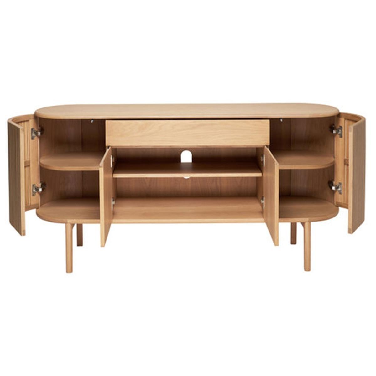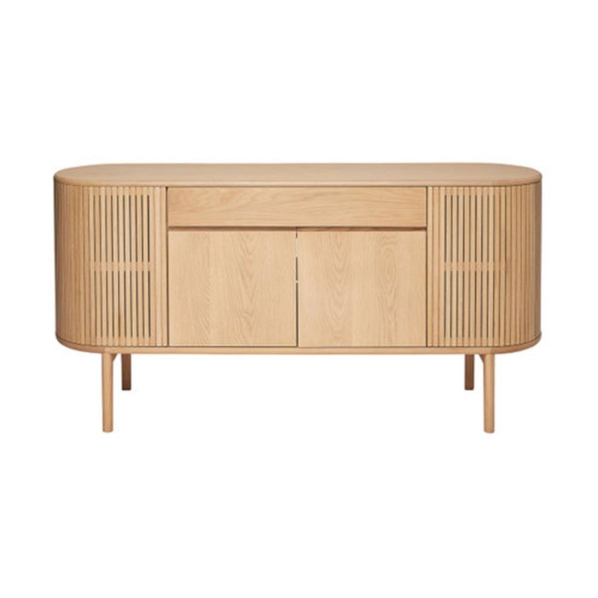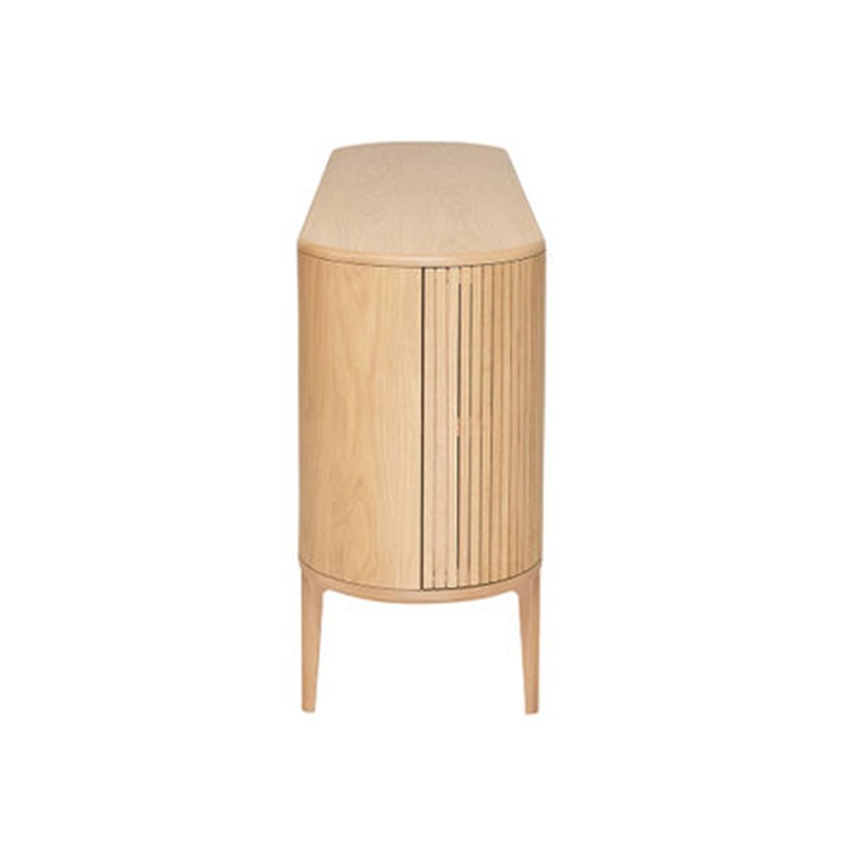 Design. Bring a retro-inspired. Twist with the Siena Sideboard, boasting smooth curves. For modern appeal. Slatted doors. Frame the cabinets end. S which. Bring beautiful detail to the Siena range, featuring. A. Push. -close mechanism on the doors and shelf for easy use. A simple statement, yet a practical storage solution.