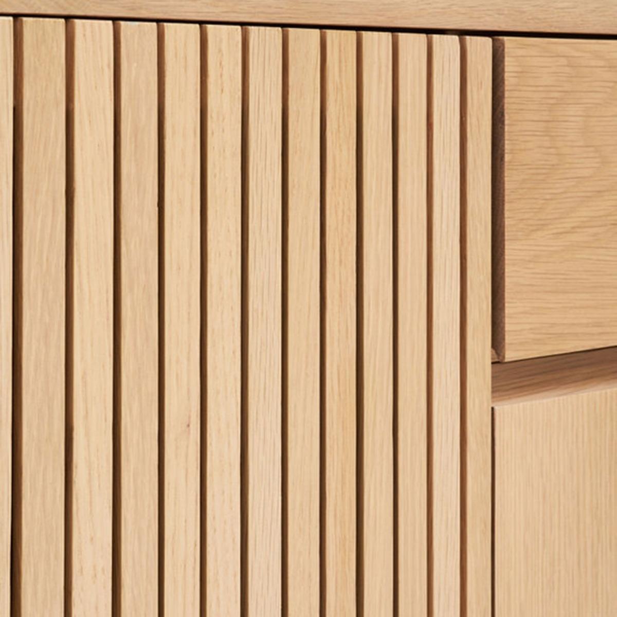 I love this sideboard for its sleek, minimalist design combined with warm, natural wood tones-it works beautifully in both contemporary and Scandi-inspired interiors. Its clean lines and subtle detailing make it a versatile piece that can serve as a statement storage solution in living rooms, dining areas, or even bedrooms. To style it effectively, try pairing it with understated decorative objects, such as ceramics or a simple table lamp, and consider layering with textured textiles nearby. Its practical size and generous internal storage mean it's both functional and aesthetically pleasing, making it a great addition for those wanting to add practical charm without compromising on style.