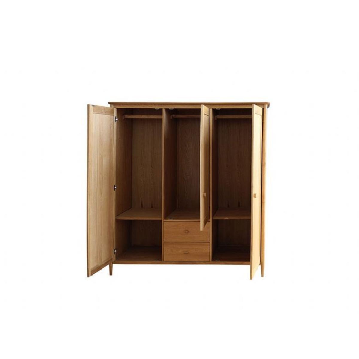Designed with simplicity and versatility in mind the Ercol Teramo 3 Door Wardrobe combines high quality materials with an elegant design to create a must have wardrobe. Influenced by the iconic shaker style the Ercol Teramo 3 Door Wardrobe provides deep spacious storage offering ample room for all of your clothes. Featuring the signature tapered legs, 2 drawers and double chamfer edges of the Teramo collection this stunning wardrobe is perfect for most bedrooms and will compliment a variety oak pieces beautifully. Ercol Oak Wood Clear Matt Finish Dimensions: 163cm x 61cm x 195cm