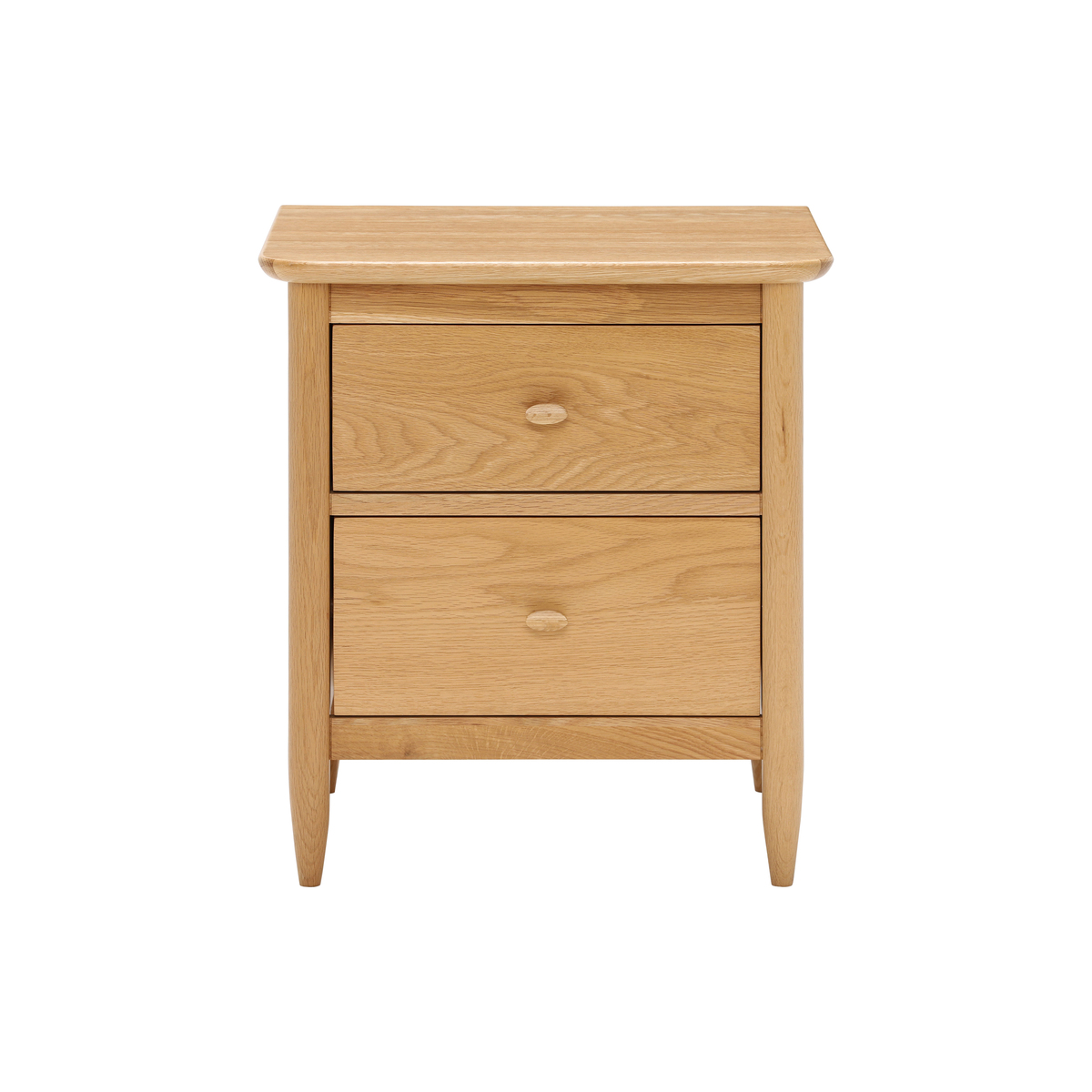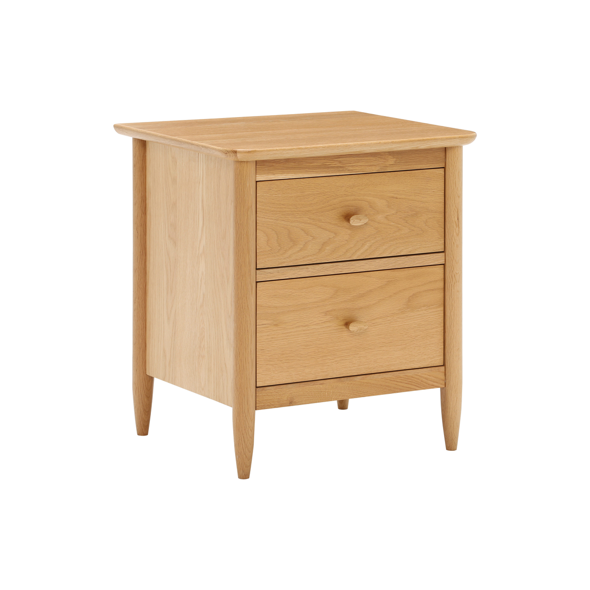 The Teramo bedside cabinet provides two spacious drawers for storage of personal possessions. The bedside table features the signature tapered turned shapes in the legs and curved profiles on the top surface. Double chamfered edges on the traditional oval drawer handles create a defined and modern profile and are superbly tactile.