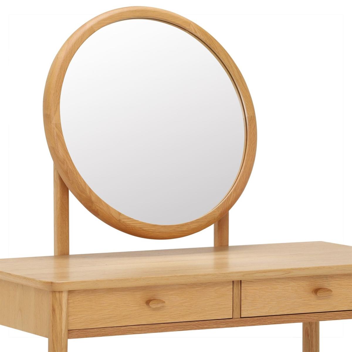 Design. A relaxed and modern design, the Teramo dressing table and mirror is beautiful with its soft curved detailing and tapered turned legs. Its stunning circular mirror creates that instant design appeal that is sure to make a statement in your bed or dressing room. There is plenty of space to organise all your beauty and grooming essentials, allowing you to create your very own vanity station. Finished in a clear matt lacquer, this provides an extra layer of protection and added durability, perfect for those accidental make up spillage incidents.