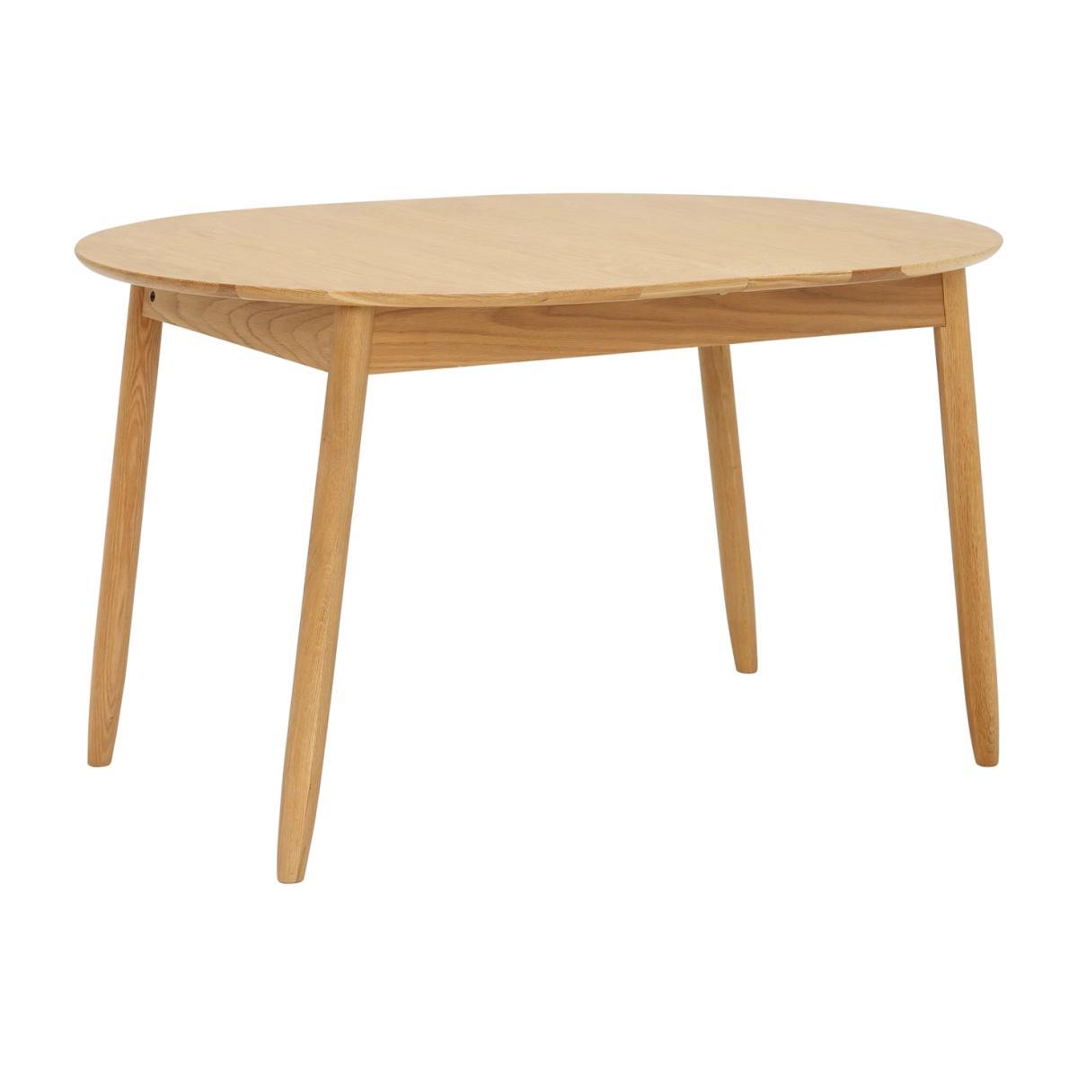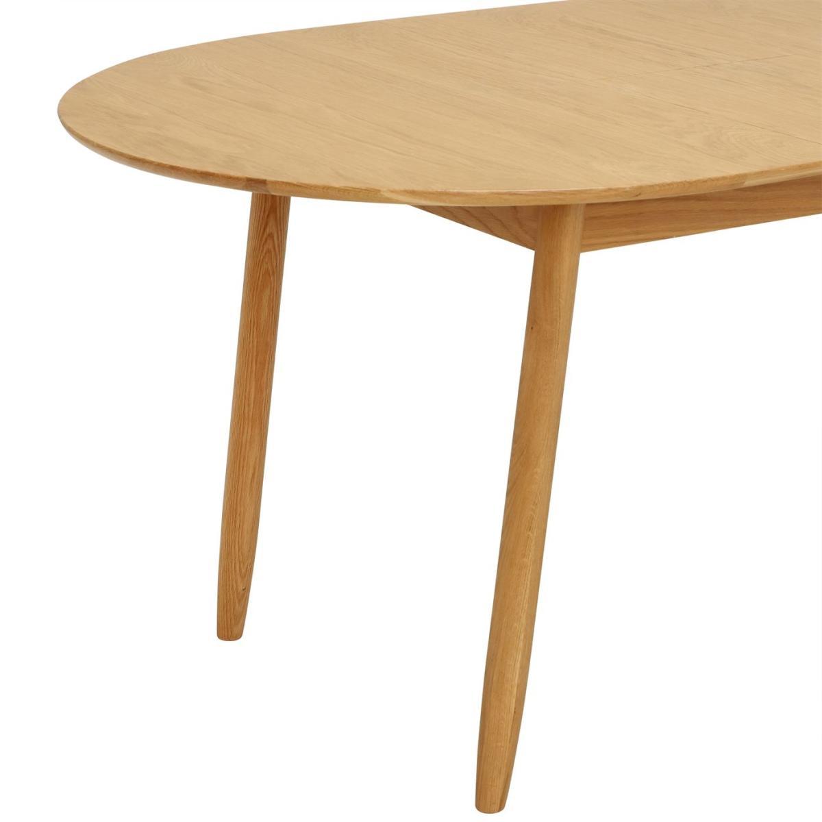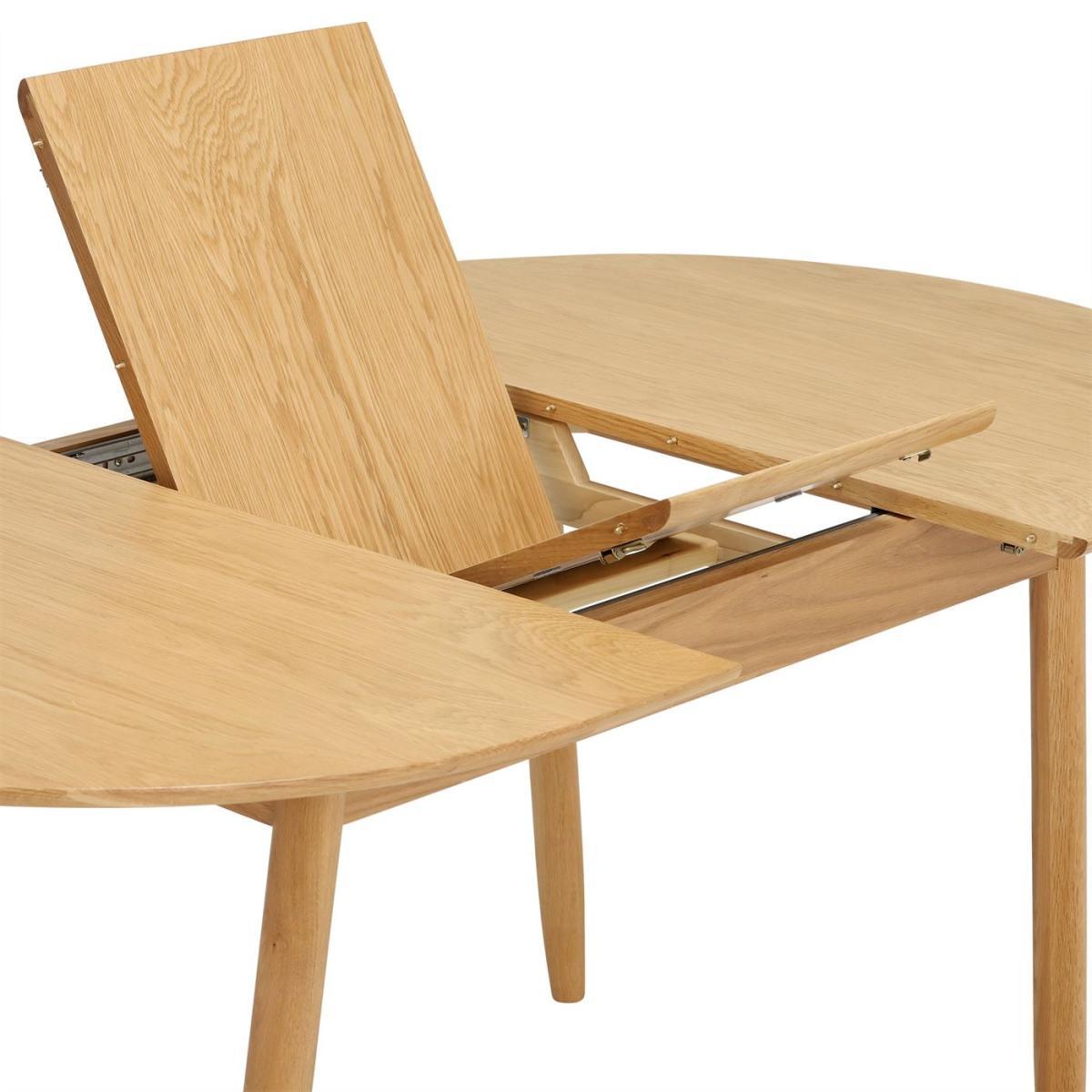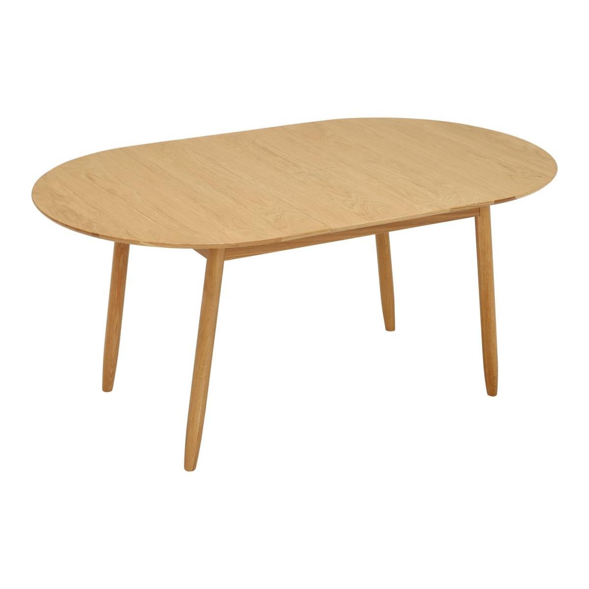 Design. The teramo small extending dining table in pale oak has an elegant, understated design that suits classic and modern interiors alike. The oval tabletop is supported by four gently splayed, tapering legs. This beautifully compact contemporary dining table extends to seat six people. The extension leaf is stored within the table, opening with ease with a butterfly mechanism.