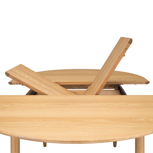 The teramo small extending dining table in pale oak has an elegant, understated design that suits classic and modern interiors alike. The oval tabletop is supported by four gently splayed, tapering legs. This beautifully compact contemporary dining table extends to seat six people. The extension leaf is stored within the table, opening with ease with a butterfly mechanism.