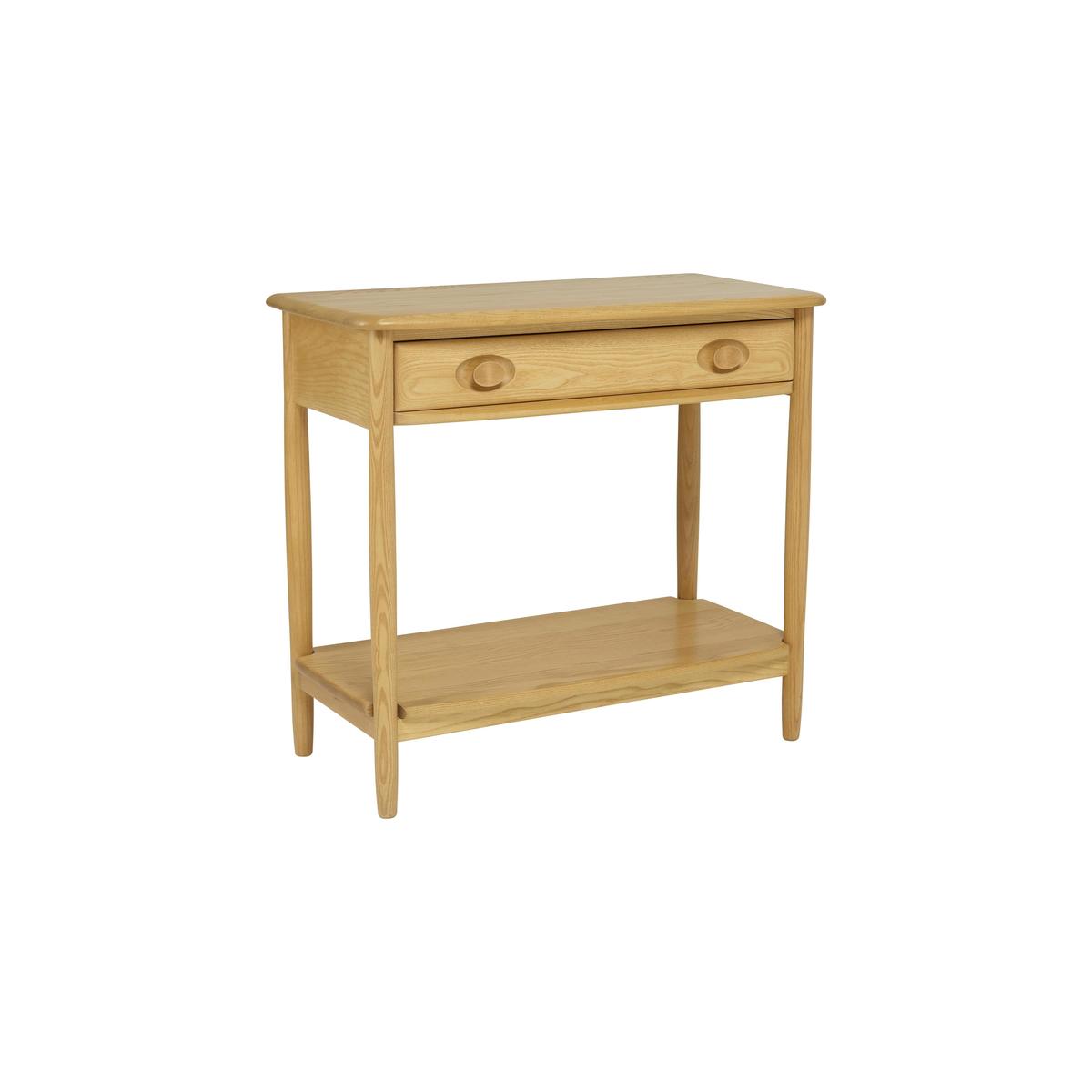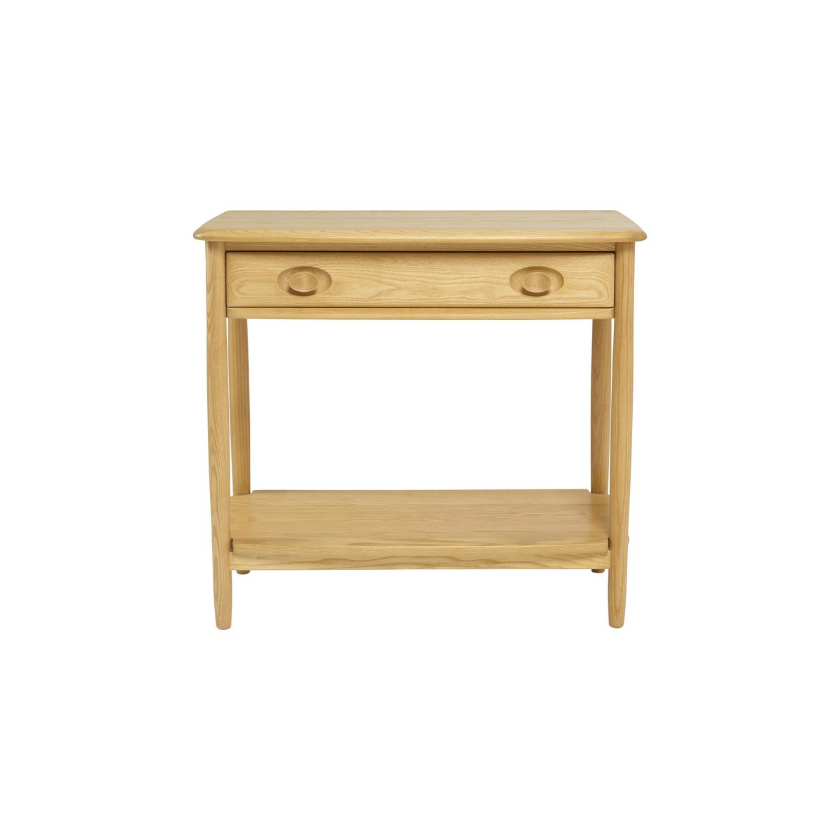 This Windsor collection of dining and occasional furniture has all the craftsmanship, design excellence and functionality you expect from ercol. The collection includes complementary styles of dining table and chair, including the iconic Windsor chair. The cabinets feature distinctive, attractively retro inset handles. Crafted from solid ash, with a choice of lacquer finishes. A stylish console table is the perfect piece for a hallway or even a compact dining room, as it offers functional storage as well as a lovely surface for a table lamp or decorative item. And this console table from ercol’s Windsor collection is simply beautiful. Crafted from highest-quality solid ash and finished with a beautiful wood-enhancing soft-sheen lacquer, this is a wonderfully well-made piece of furniture. And thanks to the roomy drawer and useful lower shelf, you’ll find that it more than meets your need for functionality. The ercol Windsor console table is part of ercol’s Windsor collection which features classic ercol style details – those gorgeous oval handles and beautifully rounded edges – along with their trademark high-quality craftsmanship. The range includes a wide section of occasional tables including a lamp table, a coffee table and a nest of tables, as well as extending dining tables, dining chairs and several sideboards. WARNING!. Furniture can tip over unexpectedly and cause injury. This item shall be fixed to a wall using the anti-tip kit provided with the furniture. Be sure to use the correct wall fixings suitable for the walls in your home. Did you know?. Natural wood has unique markings, with some colour variation. The colour and tone of wood improves with age.