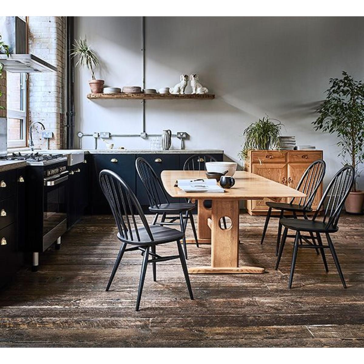 I’m a big fan of this Ercol Windsor pedestal table for its clean lines, solid beech construction and clever extending mechanism - it scales easily from everyday family meals to entertaining. Its warm wood tone and minimal profile work equally well in Scandi-inspired, contemporary or more traditional settings. For styling, keep the top clutter-free: a simple linen runner or a pair of low ceramic vases lets the grain shine through. Mix upholstered chairs with wooden stools or a bench for a collected-over-time look, and anchor the area with an indoor-friendly rug and a central pendant light to define the dining zone.