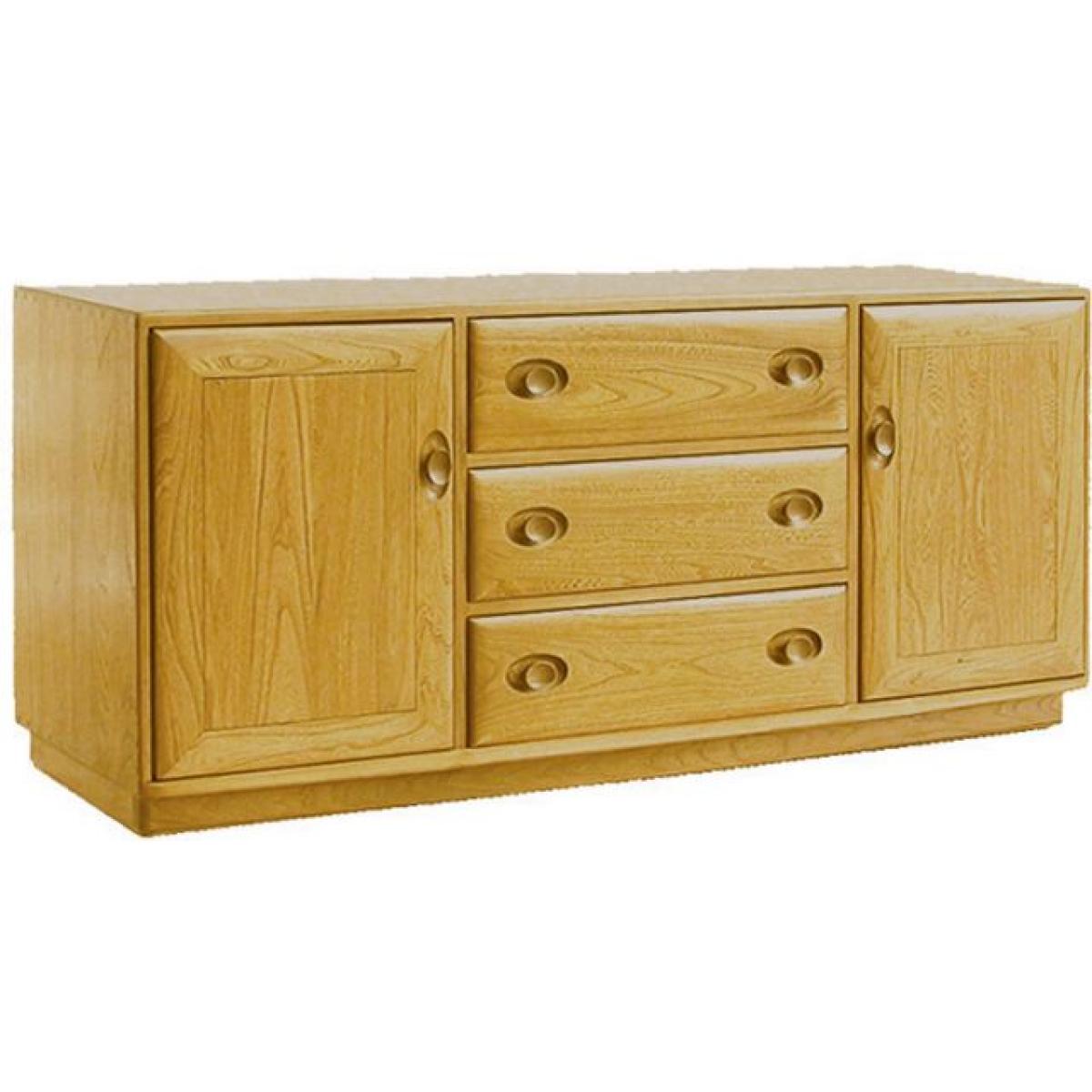 Through combining traditional craft techniques with modern machining the Ercol Windsor Sideboard truly is a design classic. Through the use of traditional techniques and modern machinery Lucian Ercolani designed and made the Windsor Sideboard with his signature dovetail joints and iconic oval handles.   Tremendous craftsmanship is apparent throughout this simple yet beautifully elegant furniture collection. Using solid traditional timbers with a clear lacquer finish Lucian Ercolani has crafted a truly beautiful sideboard. Ash Wood Shown Here In Light Wood Finish Dimensions: 156 x 46 x 69cm