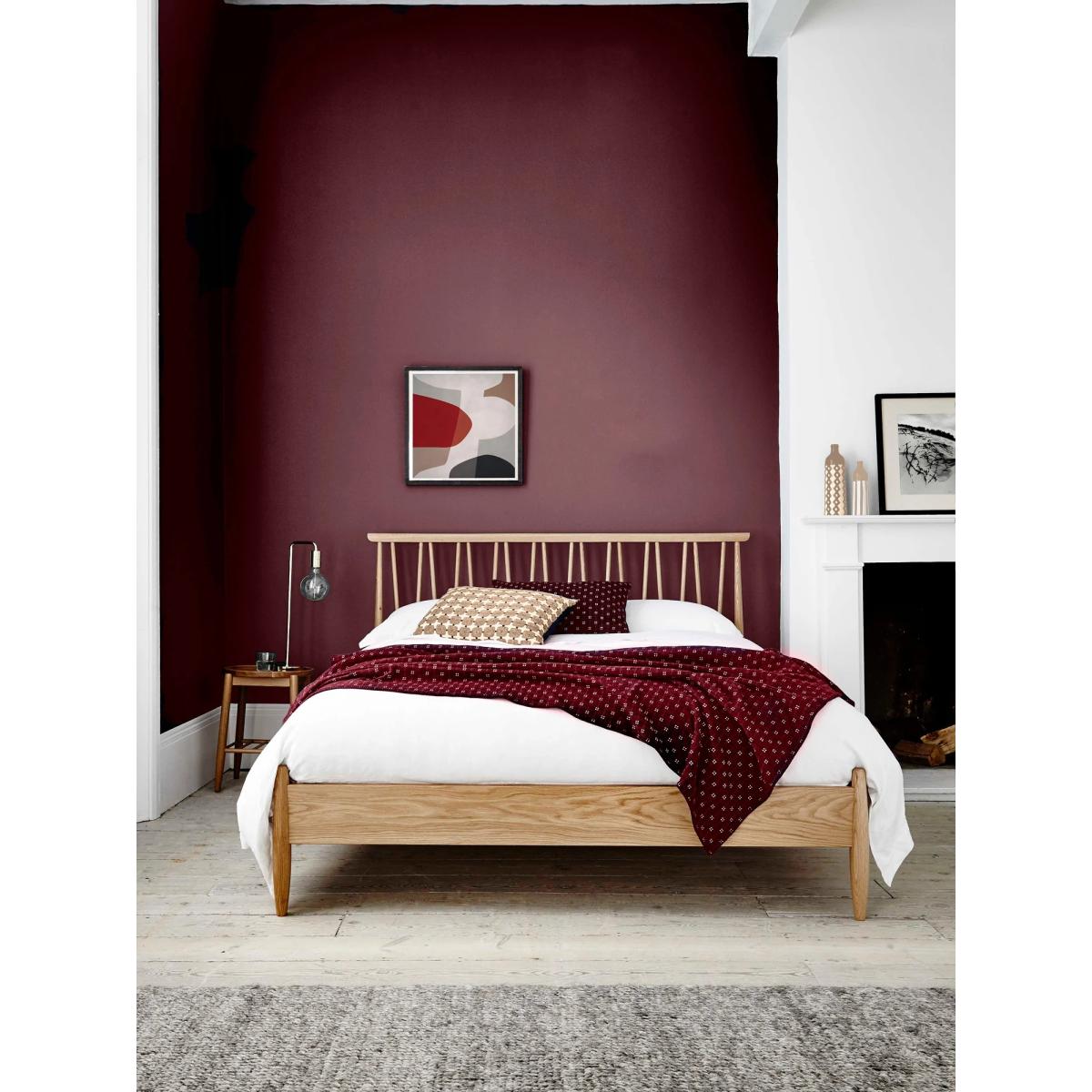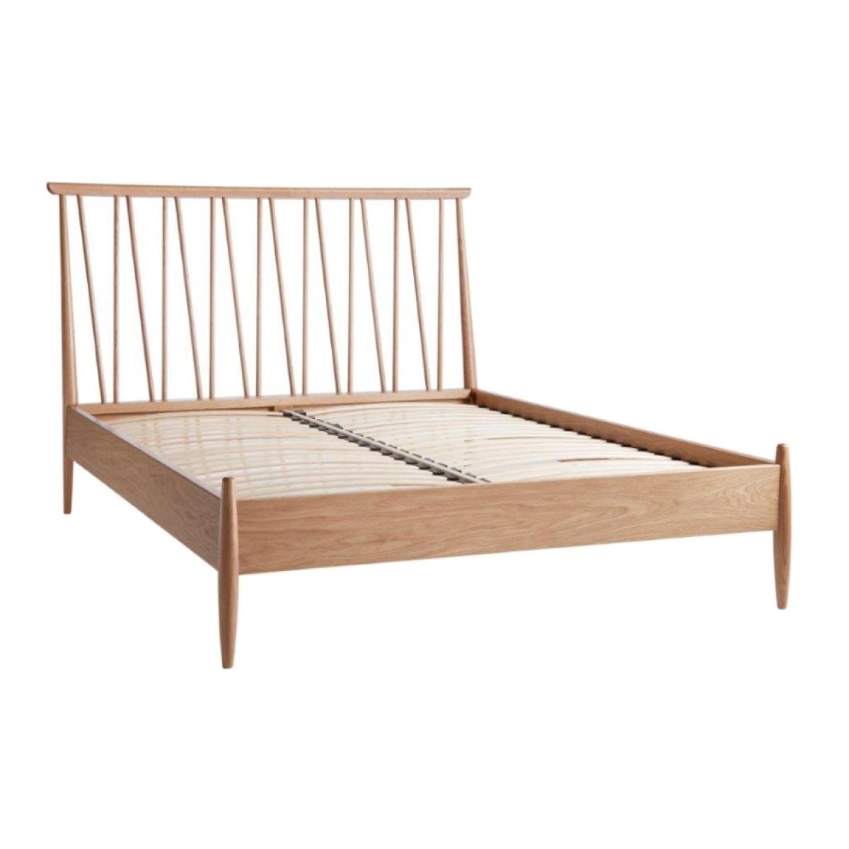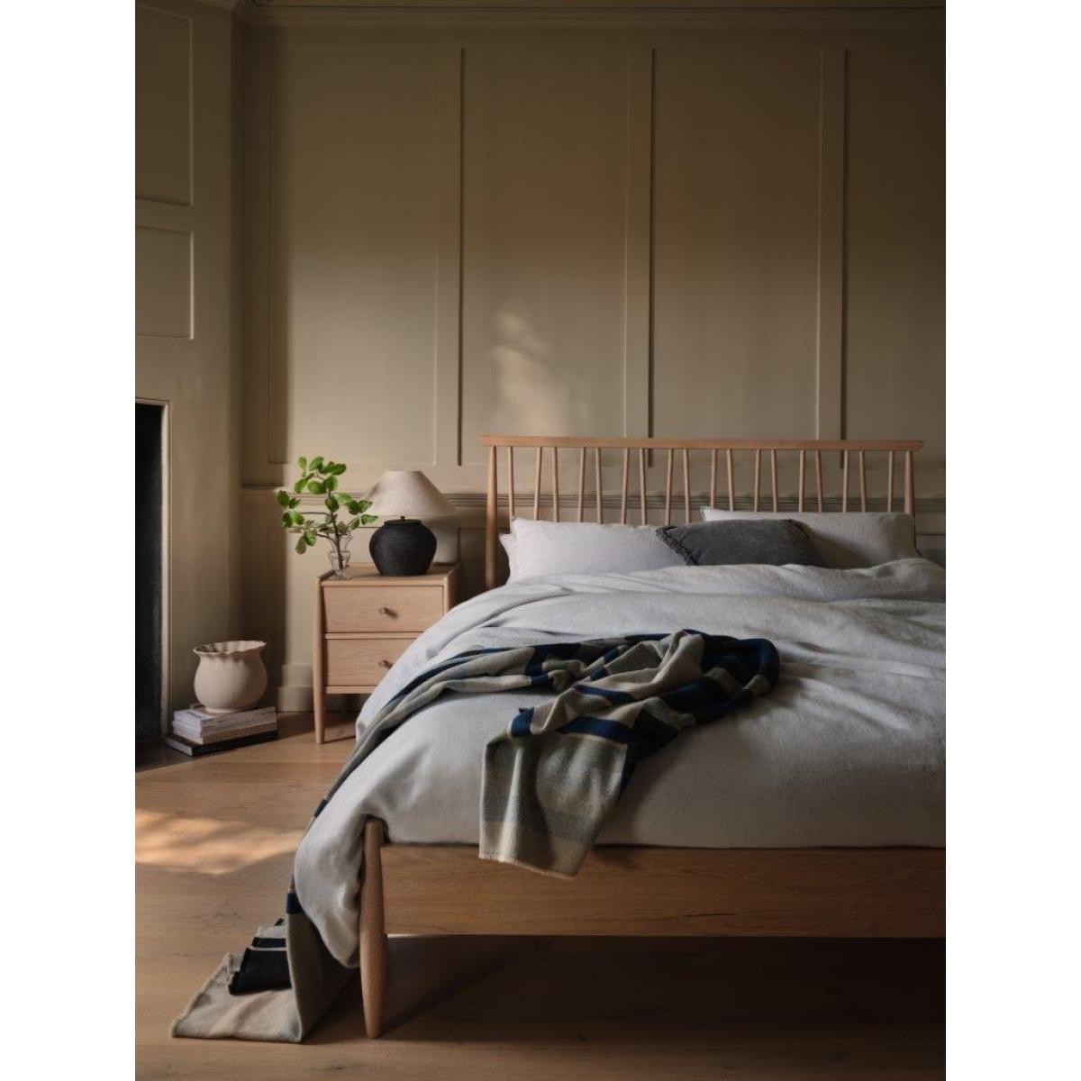 I love the Winslow bedframe for its clean lines and tapered legs; the spindled headboard gives a subtle nod to mid-century design while the solid oak suits both Scandi and contemporary schemes. Its minimal profile keeps a small room feeling open, yet the natural wood tone adds warmth. For styling, layer neutral linens - think stone-grey sheets with a cream duvet cover - and introduce texture with a knitted throw at the foot. Keep bedside tables low and simple, choose lamps in brass or matte black, and finish with a potted plant or a pair of small art prints to balance the vertical lines of the headboard.