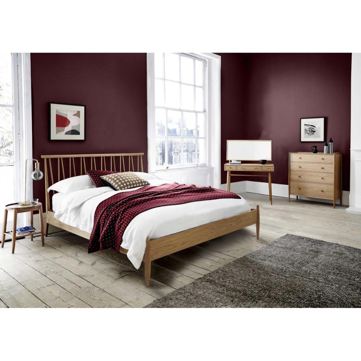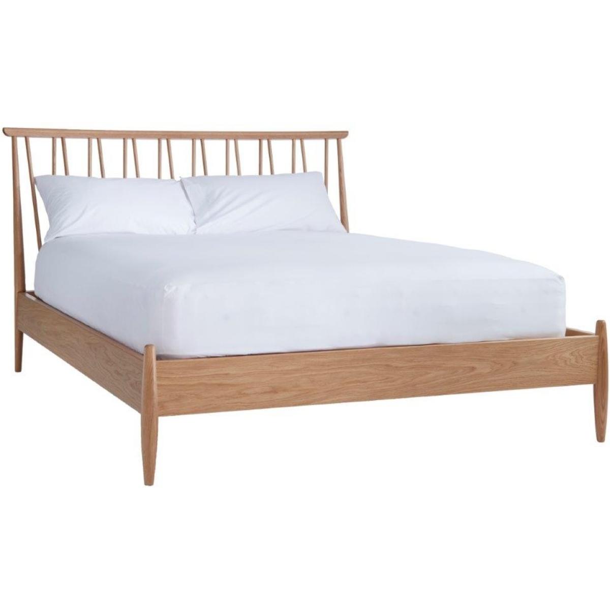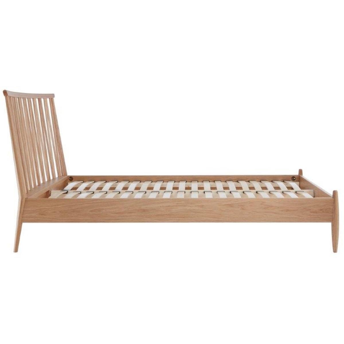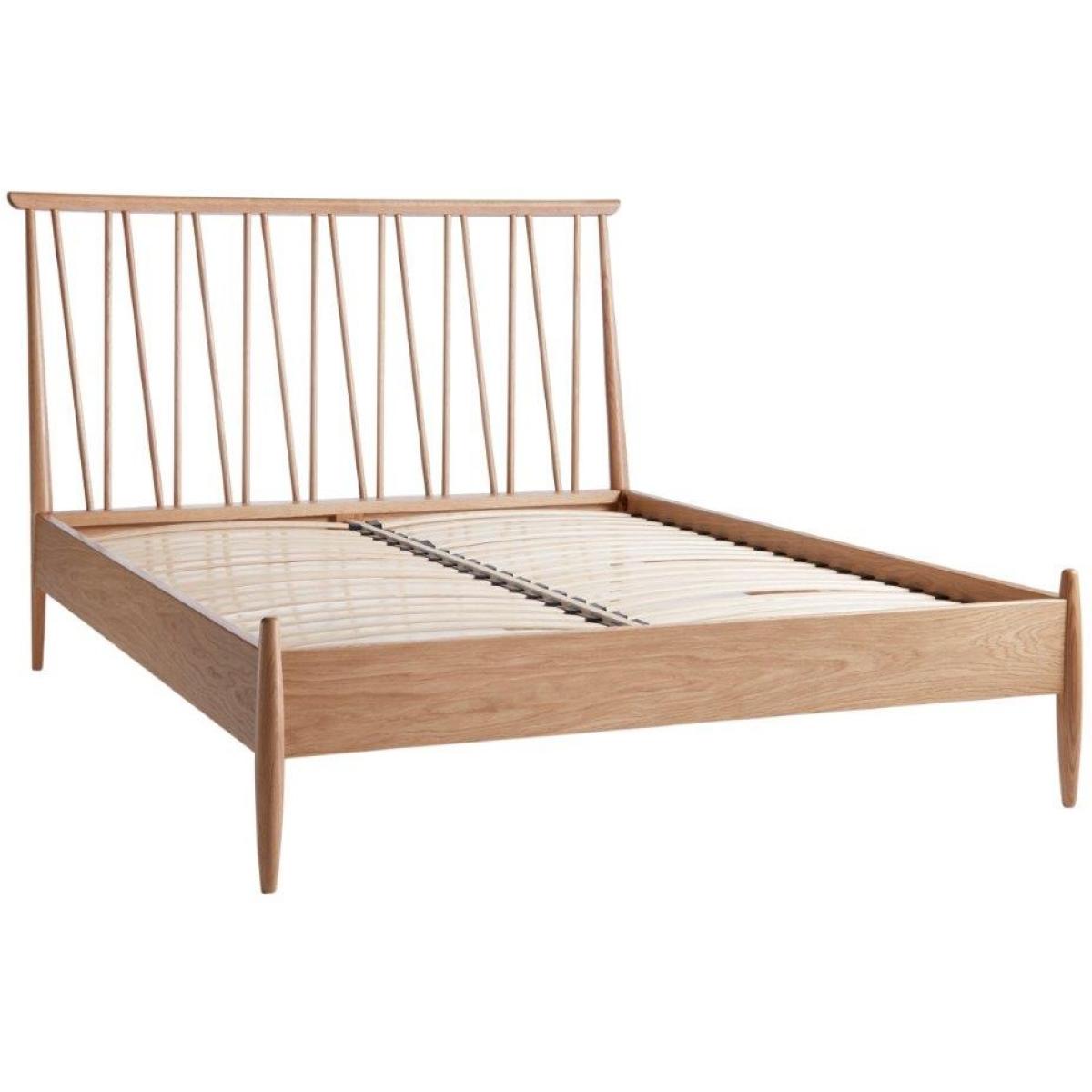 I love the Winslow bedframe for its clean lines and tapered legs; the spindled headboard gives a subtle nod to mid-century design while the solid oak suits both Scandi and contemporary schemes. Its minimal profile keeps a small room feeling open, yet the natural wood tone adds warmth. For styling, layer neutral linens - think stone-grey sheets with a cream duvet cover - and introduce texture with a knitted throw at the foot. Keep bedside tables low and simple, choose lamps in brass or matte black, and finish with a potted plant or a pair of small art prints to balance the vertical lines of the headboard.