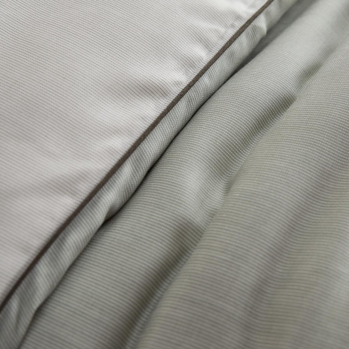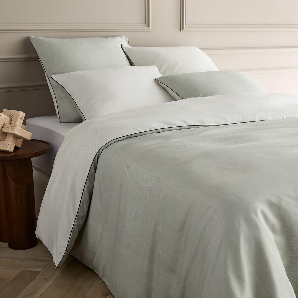 The meeting of plant and mineral tones. This reversible duvet cover features a harmony of colours inspired by nature. The subtlety of its tones was created by weaving 2-colour threads, for a very slight lined effect.. Made in Portugal, in organic cotton percale and Lyocell, this bed linen is highlighted with a contrasting border. Simple and refined. Cotton percale/Lyocell combines Lyocell - a fibre produced from wood pulp and an organic solvent with cotton percale - a high-end weaving technique offering softness, freshness and perfect hold. Product Details • 57% cotton, 43% lyocell, 125 g/m2 • Organic cotton • 200 thread count: a common indicator for measuring the quality of fabric is the number of threads per cm². Different sensations are made possible thanks to the weaving and the number of threads present. Indeed, an optimal number of threads makes the bed linen particularly soft. • Cotton percale and Lyocell • 200 thread count: a common indicator for measuring the quality of fabric is the number of threads per cm². Different sensations are made possible thanks to the weaving and the number of threads present. Indeed, an optimal number of threads makes the bed linen particularly soft. • Reversible pillowcase and duvet cover • Contrasting bourdon trim • Straight buttoned hem Care Advice Follow our care tips to maintain the quality of your laundry • Machine washable at 40°C • Tumble dry at low temperature • Iron at average temperature • Do not dry clean. Dimensions • 140 x 200cm: Single • 200 x 200cm: Double • 240 x 220cm: King • 260 x 240cm: King • Made in Europe. • Cotton from organic farming. Organic farming does not use any chemicals, pesticides, insecticides or GMOs. Produced with minimal impact on biodiversity. • OEKO-TEX® Standard 100. Standard 100 certification by OEKO-TEX® tests textile products for harmful substances via an independent, international label.